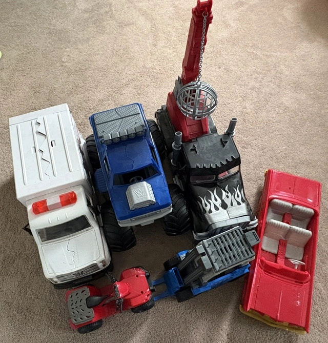 Buy & SellWWE Wrestling Vehicles LotWWE Wrestling Vehicles Lot$40All vehicles appear complete with all parts. Some damage to them as they have been played with by children before. For Sale By: OwnerWHERE TO MEETCheck LocationView MapSELLERJushanBram W36242 reviews0 chats·0 favorites·15 viewsSEND CHAT TO SELLERHi Jushan! I’m interested in your listing.Hi Jushan! I’m interested in your listing.Get the Karrot app to chatSign In to chat