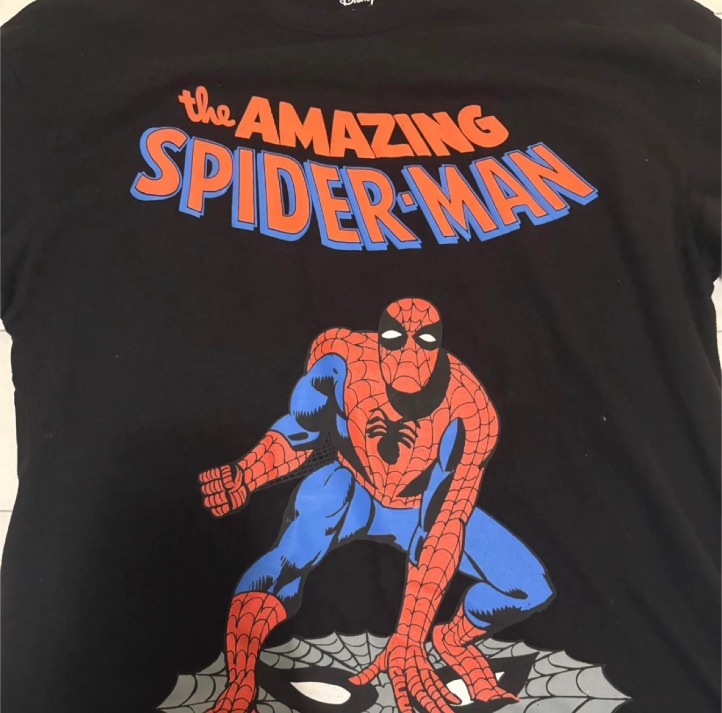 I'm selling a Disney t-shirt featuring The Amazing Spider-Man! It's a size Large and made from 60% cotton and 40% polyester