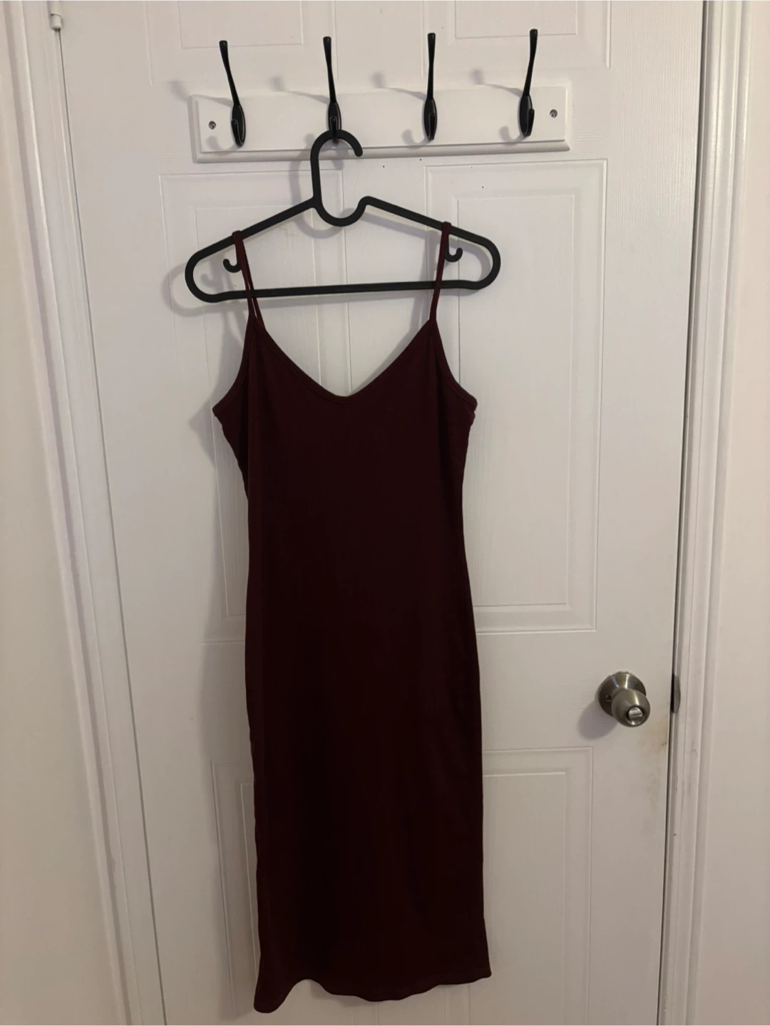 A simple burgundy dress from Pacifika! It's a size small and in great condition. The material is ribbed.