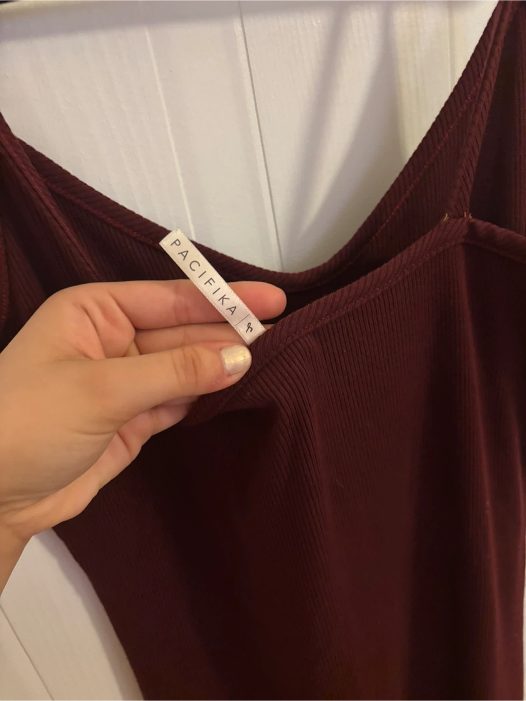 A simple burgundy dress from Pacifika! It's a size small and in great condition. The material is ribbed.