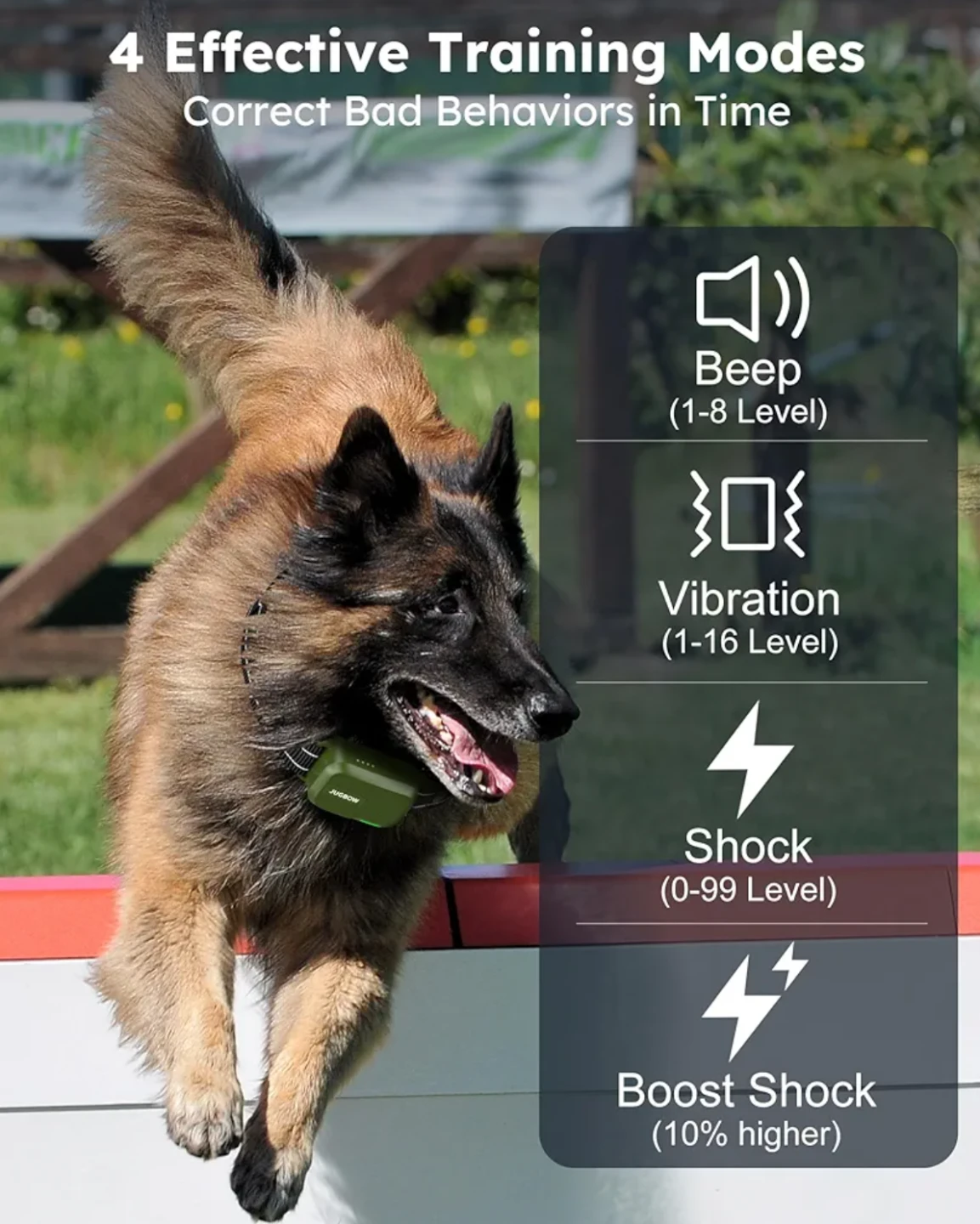 Looking to train your furry friend? This JUGBOW dog training collar is just the thing! It features 4 effective training modes to help correct bad behaviours: beep, vibration, shock, and boost shock. The collar is adjustable for dogs 10-120lbs and the remote has a range of up to 4200ft. It's also 100% IPX7 waterproof (note: remote is not waterproof)