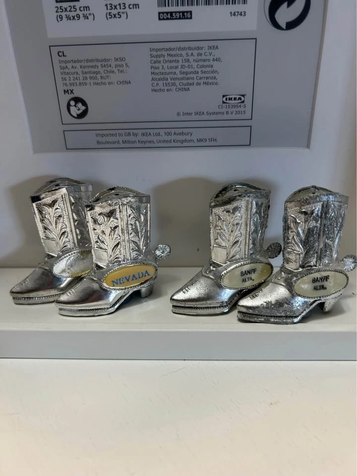 Mini silver cowboy boots. Each Pair $10