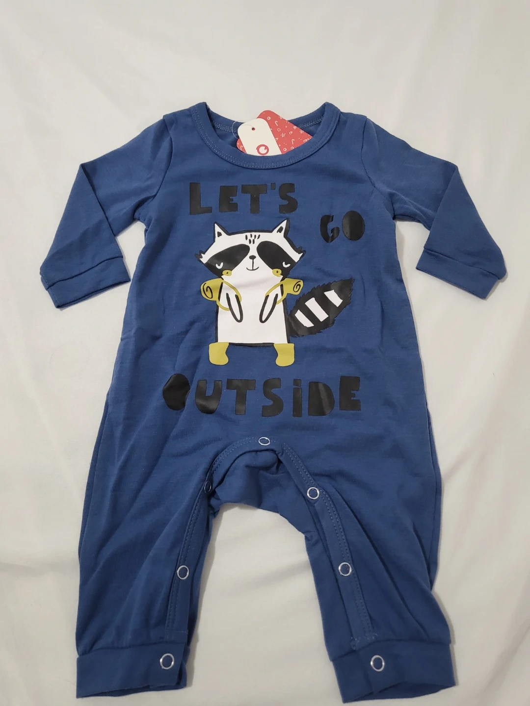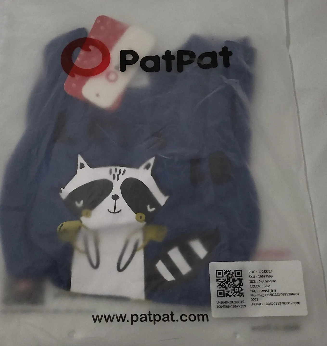 Super cute PatPat baby romper featuring a raccoon design! It's brand new and still in the original packaging. The size is 0-3 months and the colour is blue. Perfect for your little one!