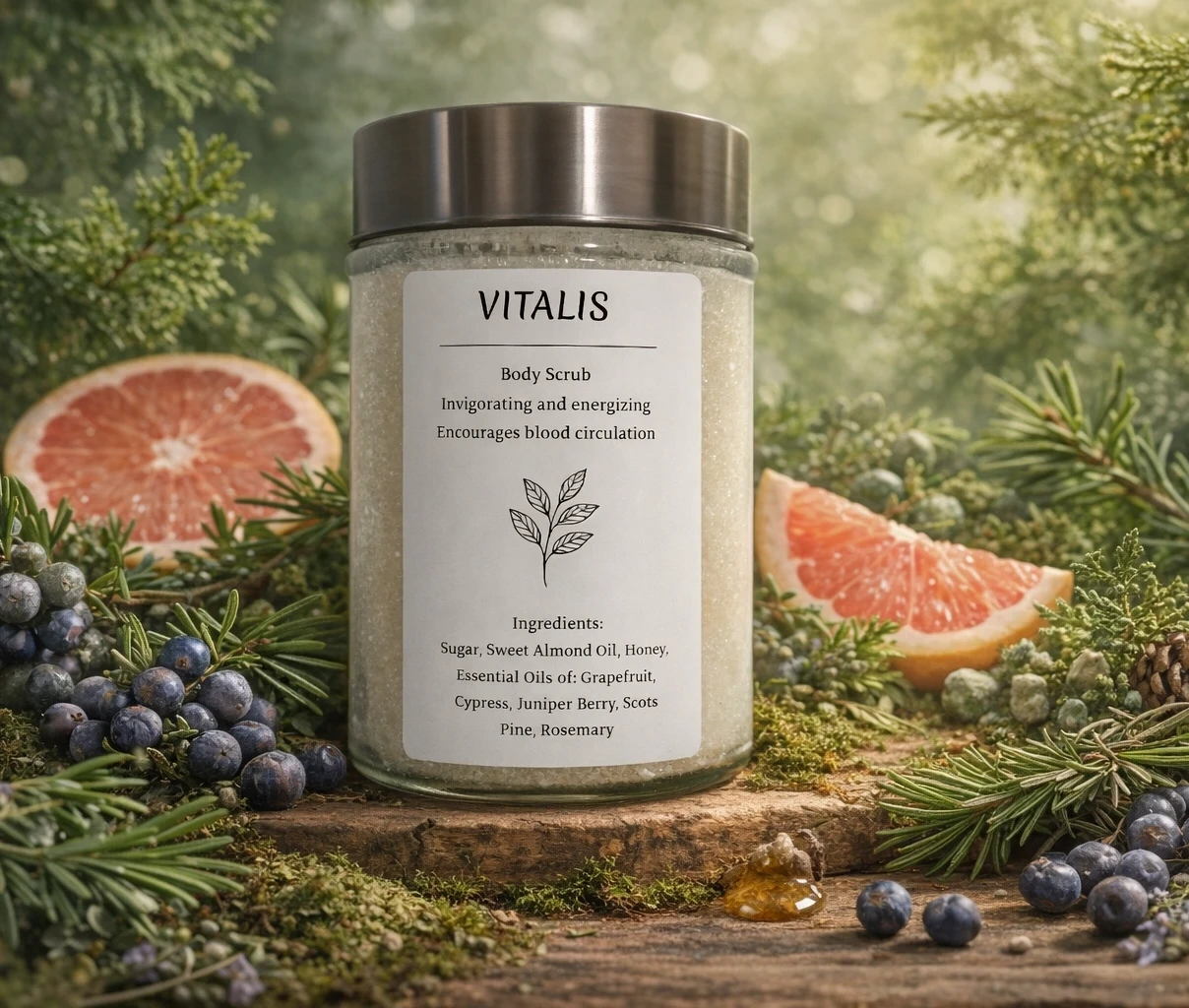 Vitalis is a handcrafted body scrub that awakens your senses and energizes while taking care of your skin🌿
