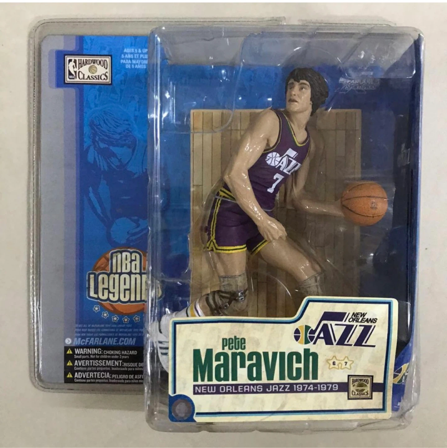 Selling a McFarlane NBA Legends action figure of Pete Maravich. It's in its original packaging, so it's in great shape. A cool collectible for any basketball fan!