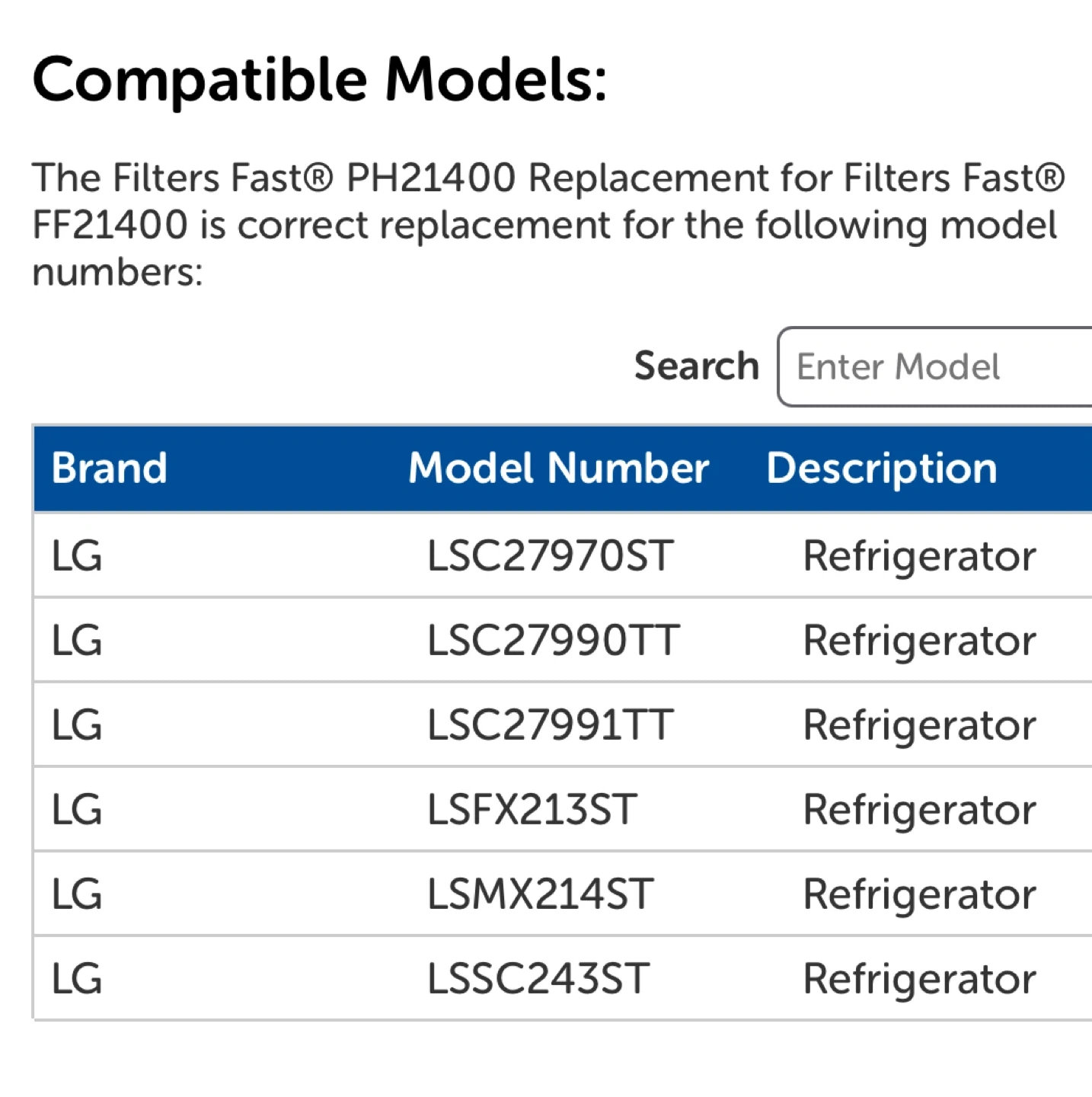 Selling 2 Filters Fast PH21400 refrigerator water filter. This filter is designed to provide clean drinking water. It is certified to NSF/ANSI standards 42, 53, and 401. It replaces part number 5231JA2006A, LT600P, AP4457353, RFC1000A. It has a filter life of 6 months or 300 gallons.