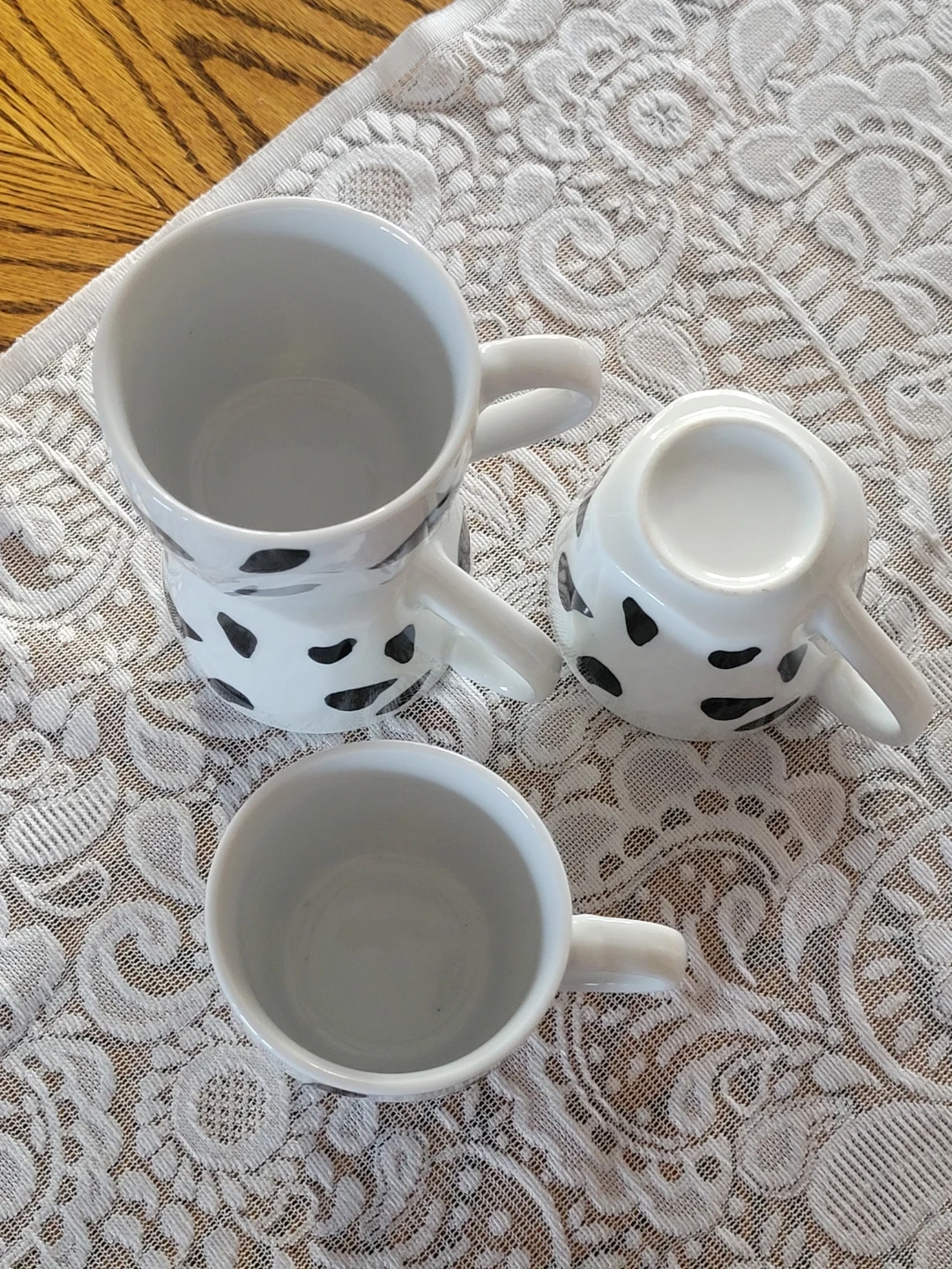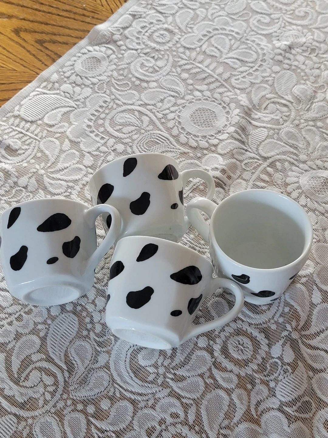 Set of 4 White Mugs with cow print. Farmhouse