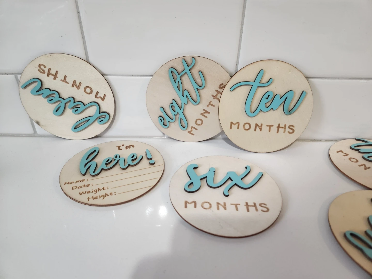 I'm selling a set of IMMISE 3D baby monthly milestone cards! The set includes 7 wooden plaques, double sided. Capture every precious momth with these cute cards!