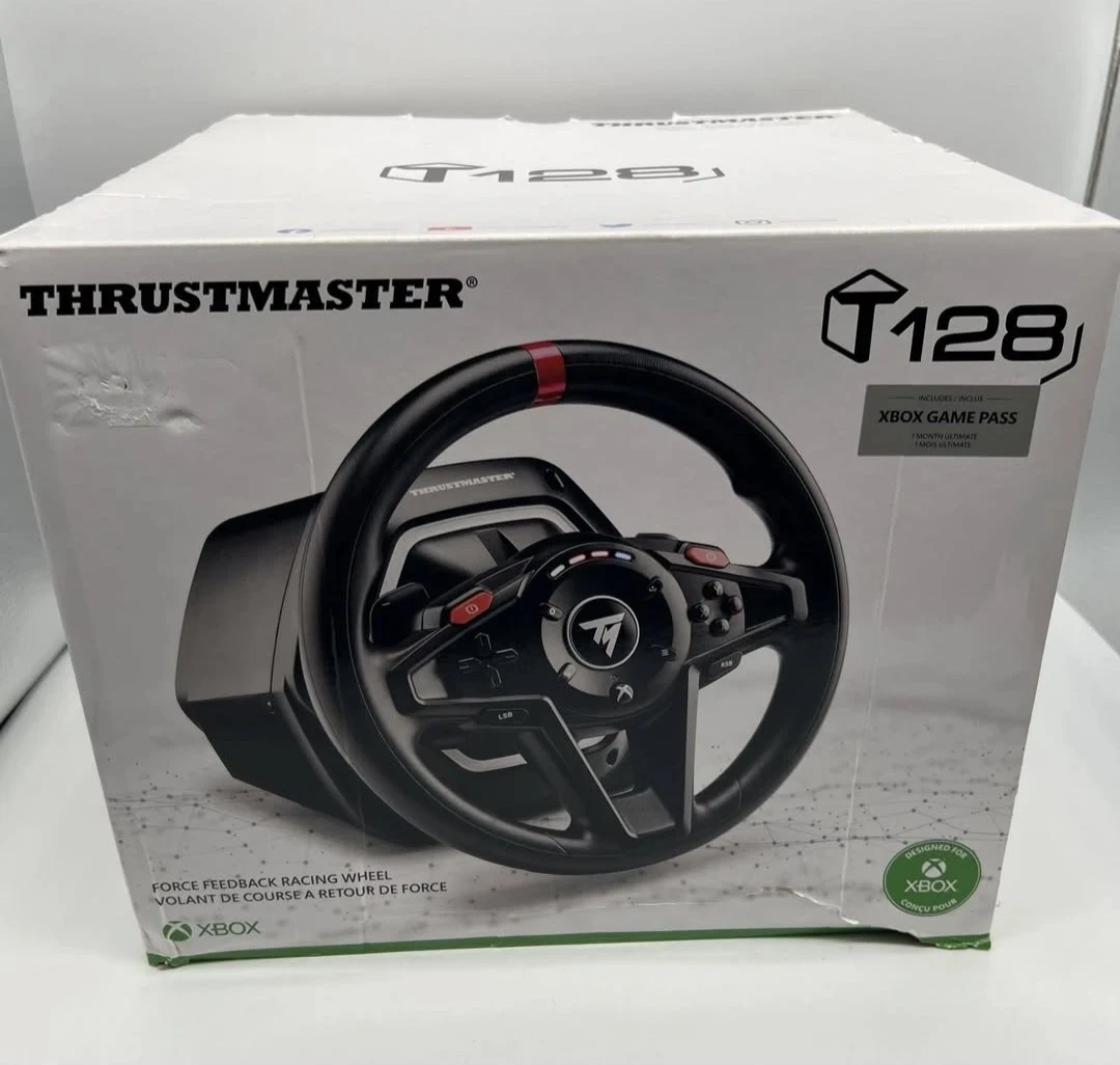 Selling a Thrustmaster T128 Force Feedback Racing Wheel for Xbox. It's in great shape and ready for a new racer! Comes with the wheel and pedal set. Compatible with PC. Includes the box! Can deliver within Richmond.