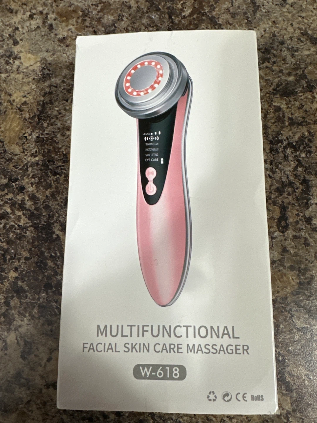 I'm selling a multifunctional facial skin care massager, model W-618. It's designed to warm pores, clean up deep pores, fully introduce skincare products, enhance cell activity, promote blood circulation, enhance skin firmness and elasticity, and promote the absorption of eye cream to achieve eye beauty. It also offers positive ion deep cleansing, negative ion promote nutrition absorption, warm massage lifting skin, and exquisite pulling & firming skin. The massager comes in its original box