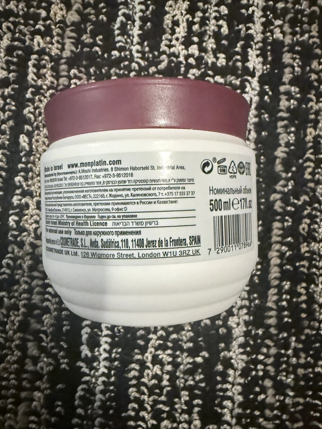 Selling a Mon Platin Professional Black Caviar & Silk Protein Hair Mask. It's a 500ml hair mask. The expiration date is 2027 August