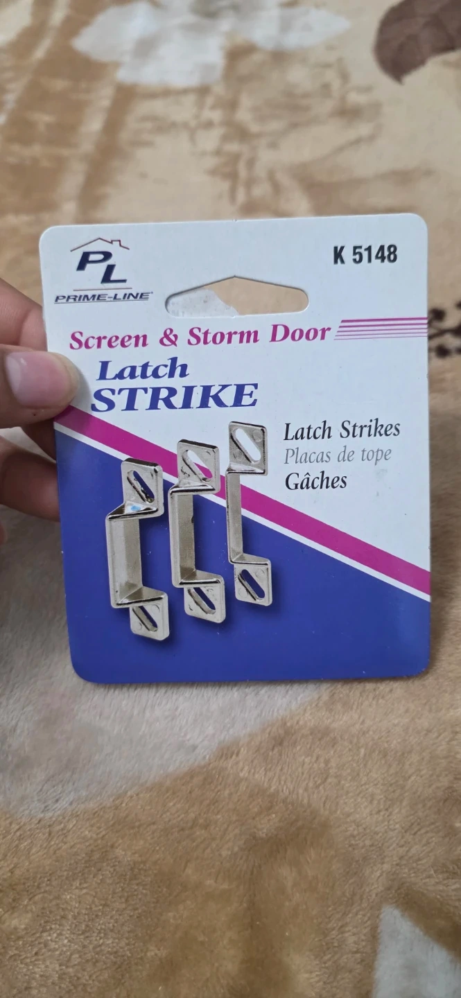 Selling a new Prime-Line screen and storm door latch strike, model K 5148. It's still in its original packaging and includes the necessary screws for installation