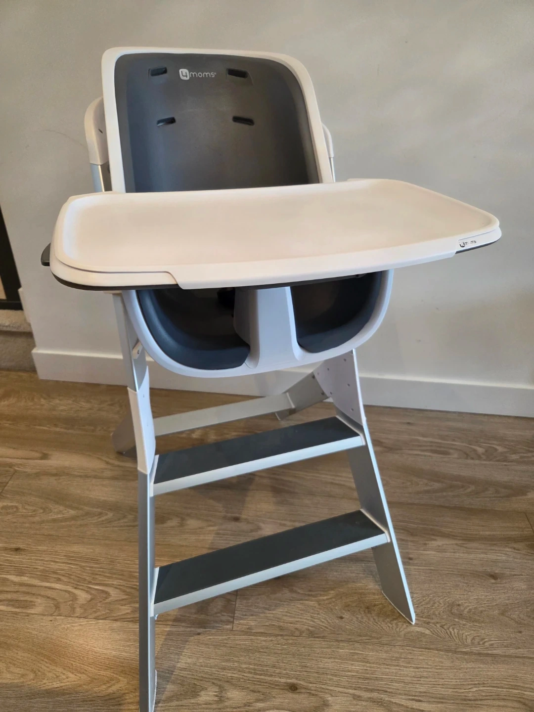 4moms Connect High Chair with one handed magnetic tray table attachment.