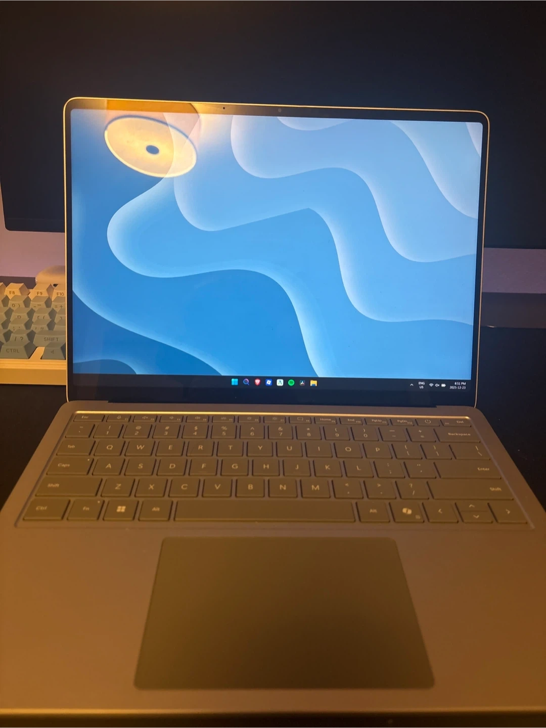 This is one of Microsoft’s newest Surface laptops — thin, premium build, and very efficient.