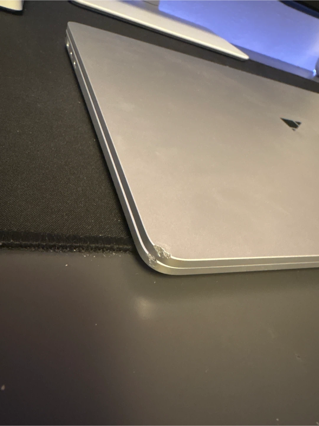 • Dent is purely cosmetic and does not affect use, screen, or hinges