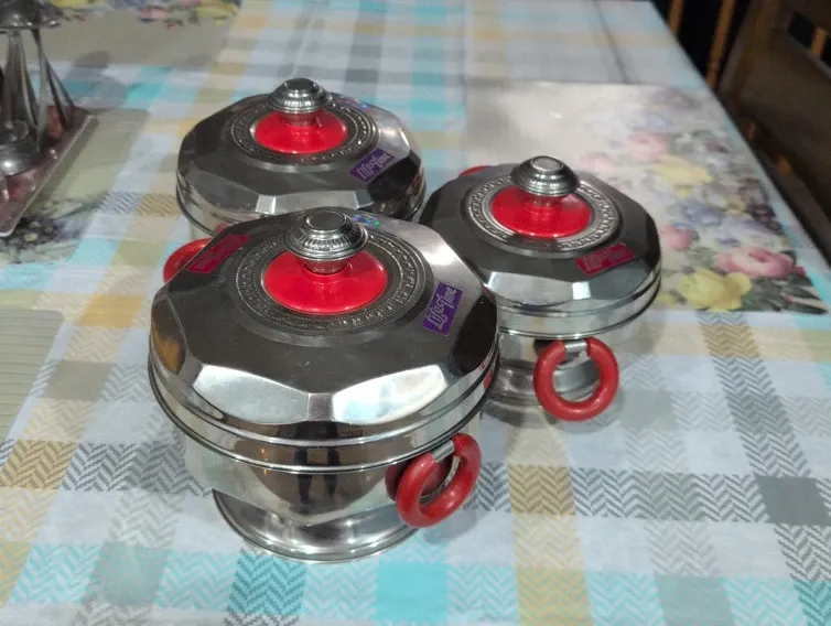 Selling a set of three Lifetime brand stainless steel food containers. They're in great shape and ready to keep your food fresh! The containers feature a unique design with red accents. Perfect for storing leftovers or packing lunches! Very light weight
