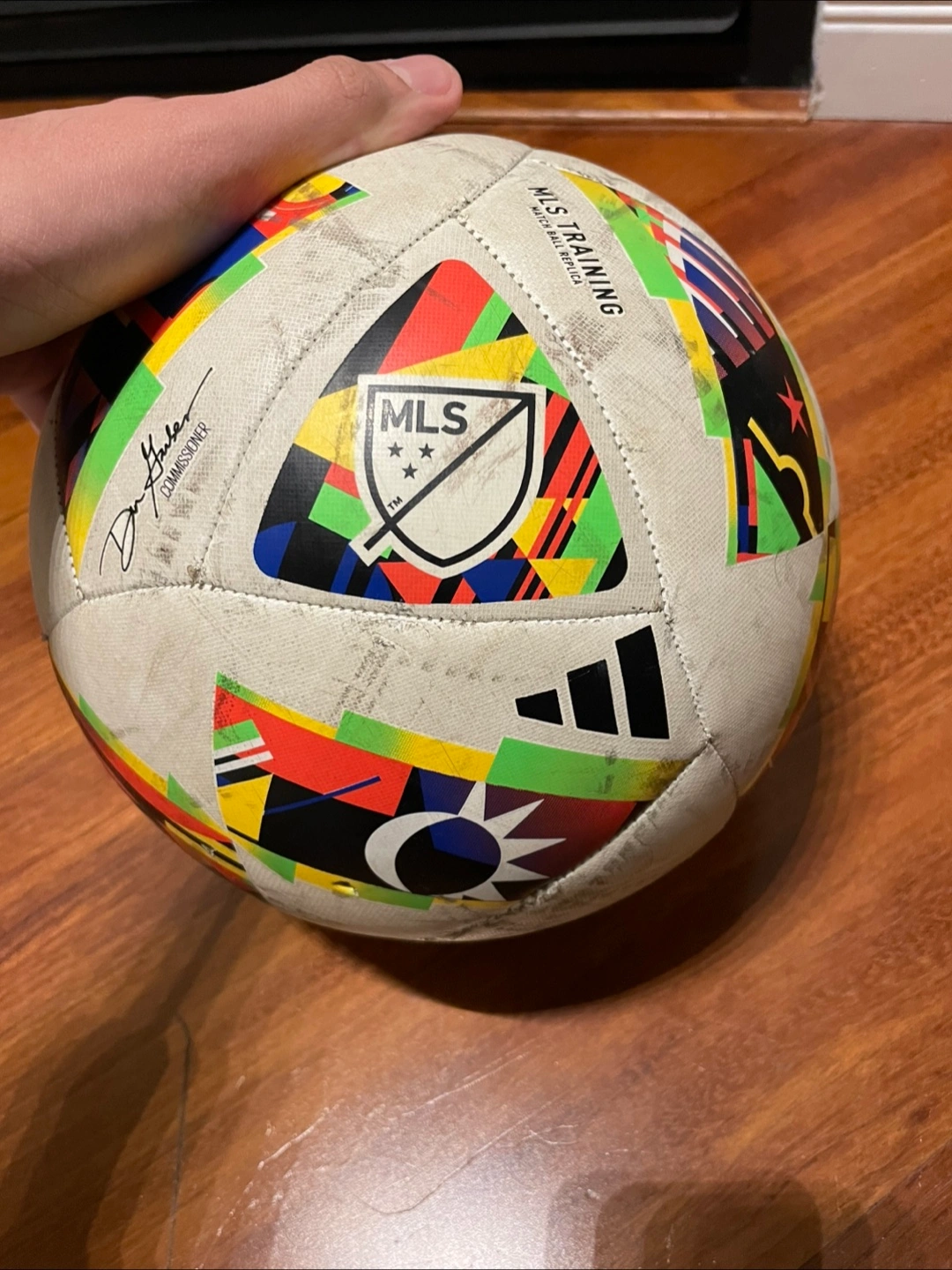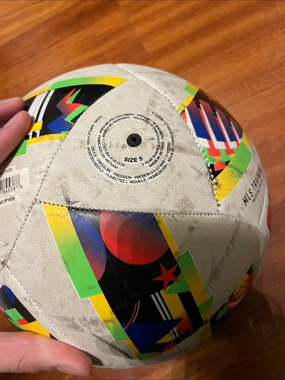 Selling an Adidas MLS Training soccer ball in size 5. It's in used condition but still has plenty of life left for training or casual play