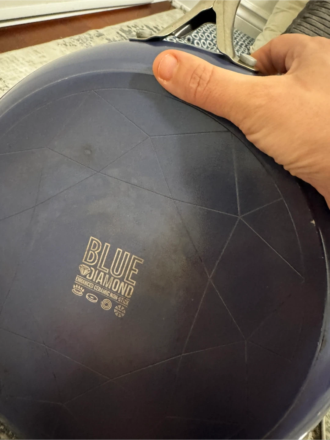 Selling a Blue Diamond enhanced ceramic non-stick fry pan with a lid. It's in great condition and ready for a new kitchen!