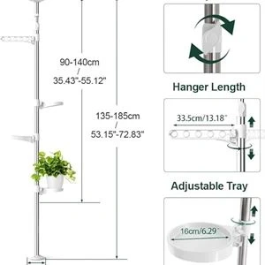 The height has two size ranges and can be adjusted according to the size of the home. Height: 90-140cm/35.43-55.11inches; 135-185cm/53.14-72.83inches ; The tray's inside diameter is about 16cm (6.29inches).