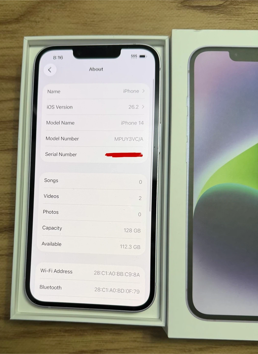 Selling my iPhone 14 in purple with 128GB of storage. It's in excellent condition and comes with the original box. The battery health is at 85%. Feel free to ask any questions!