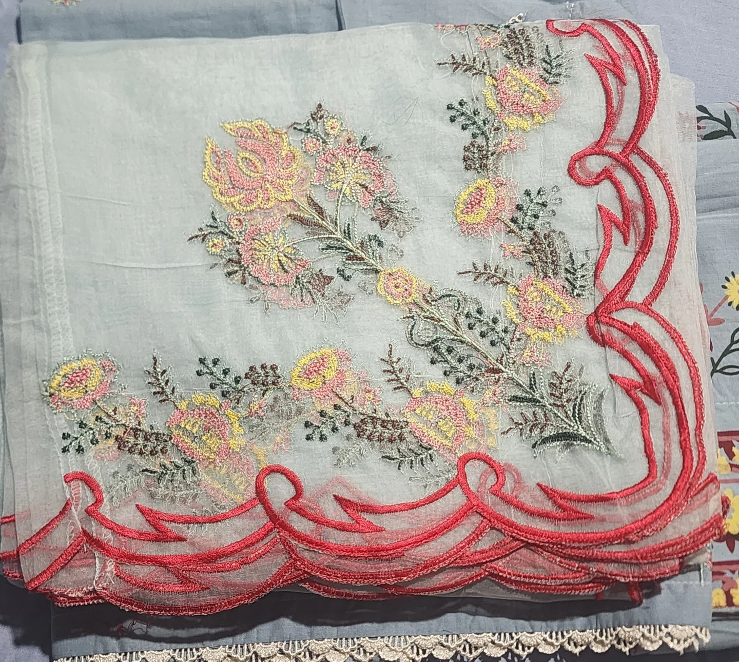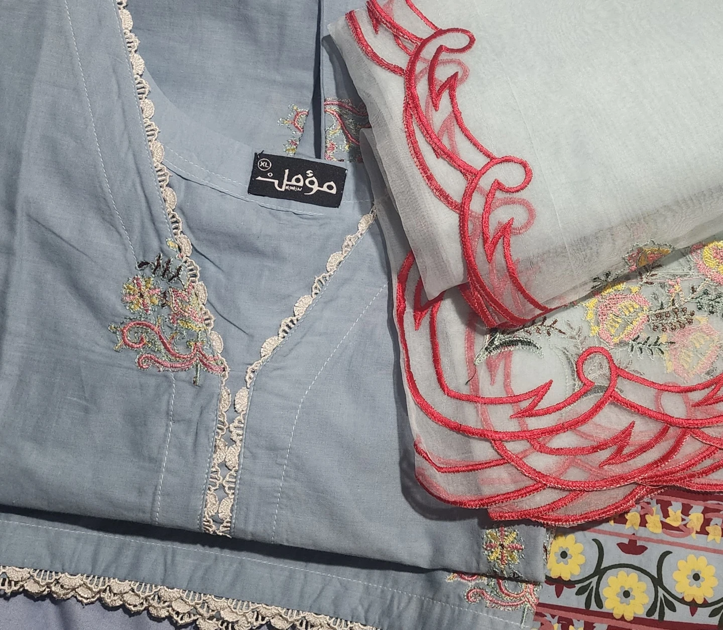 Beautiful light blue shalwar kameez with delicate embroidery. This traditional outfit is perfect for special occasions or everyday wear. It features a comfortable fit and a stylish design. The fabric is soft and breathable, making it ideal for all-day comfort. A lovely addition to any wardrobe!