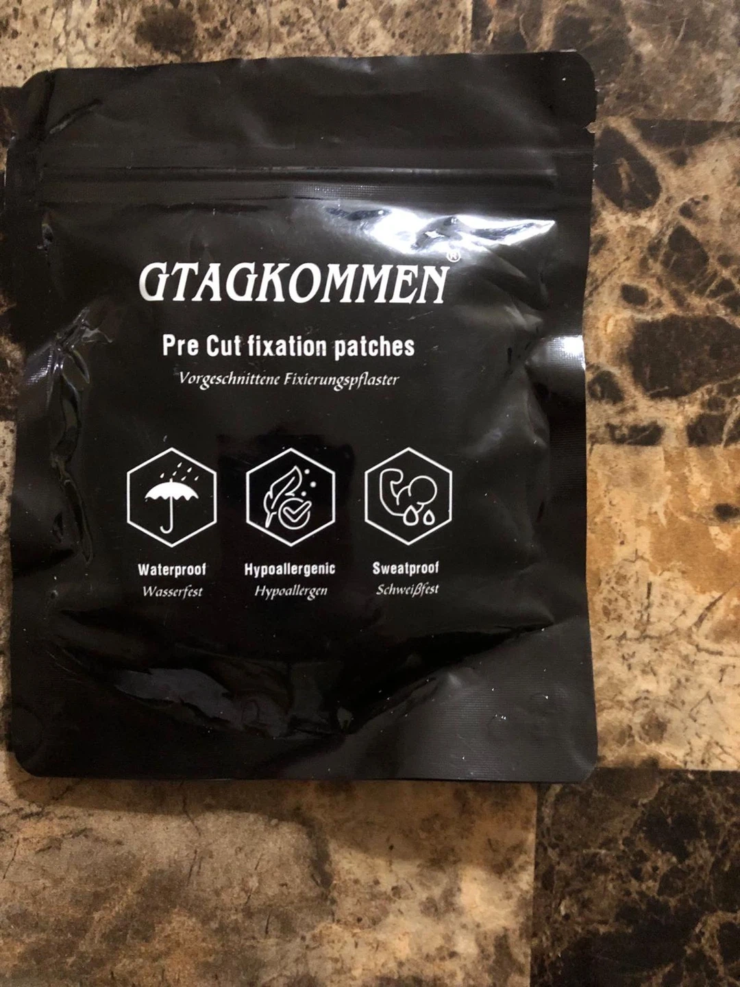 I'm selling a pack of Gtagkommen Pre Cut fixation patches. These patches are waterproof, hypoallergenic, and sweatproof! They are brand new in the original packaging!