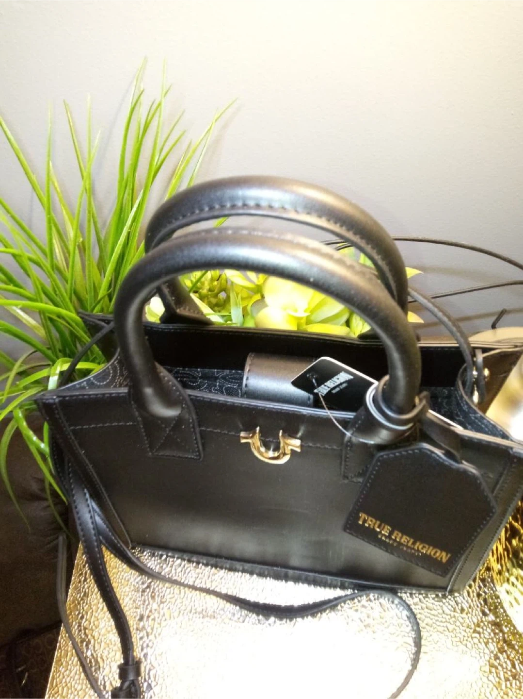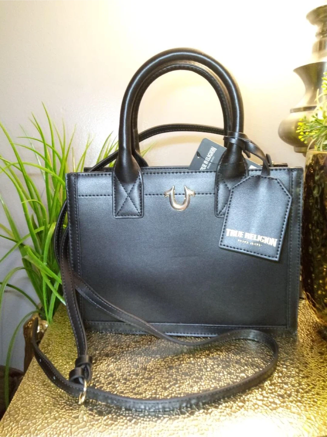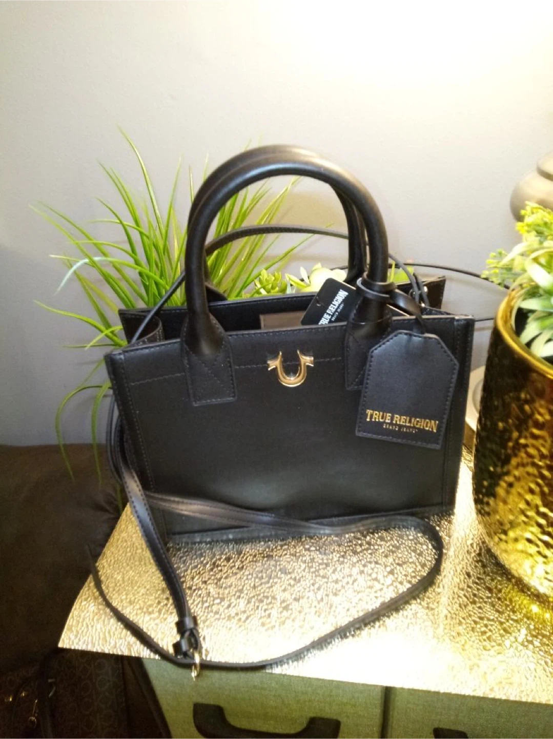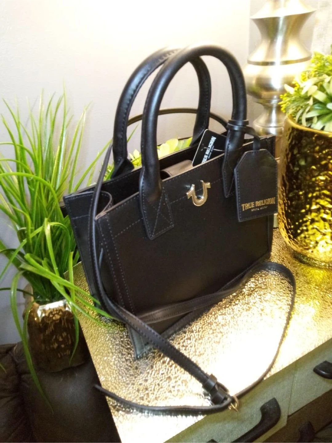 Selling a stylish black tote bag from True Religion! It features a sleek design with the iconic True Religion logo. Perfect for carrying your essentials in style!