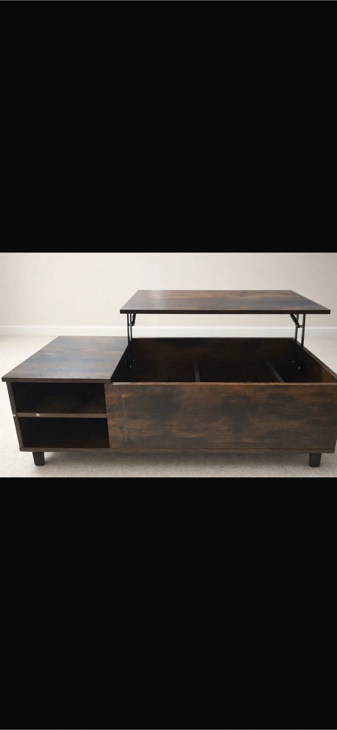 Selling a lift top coffee table that's in good condition. It has hidden storage and a unique design. Perfect for small spaces