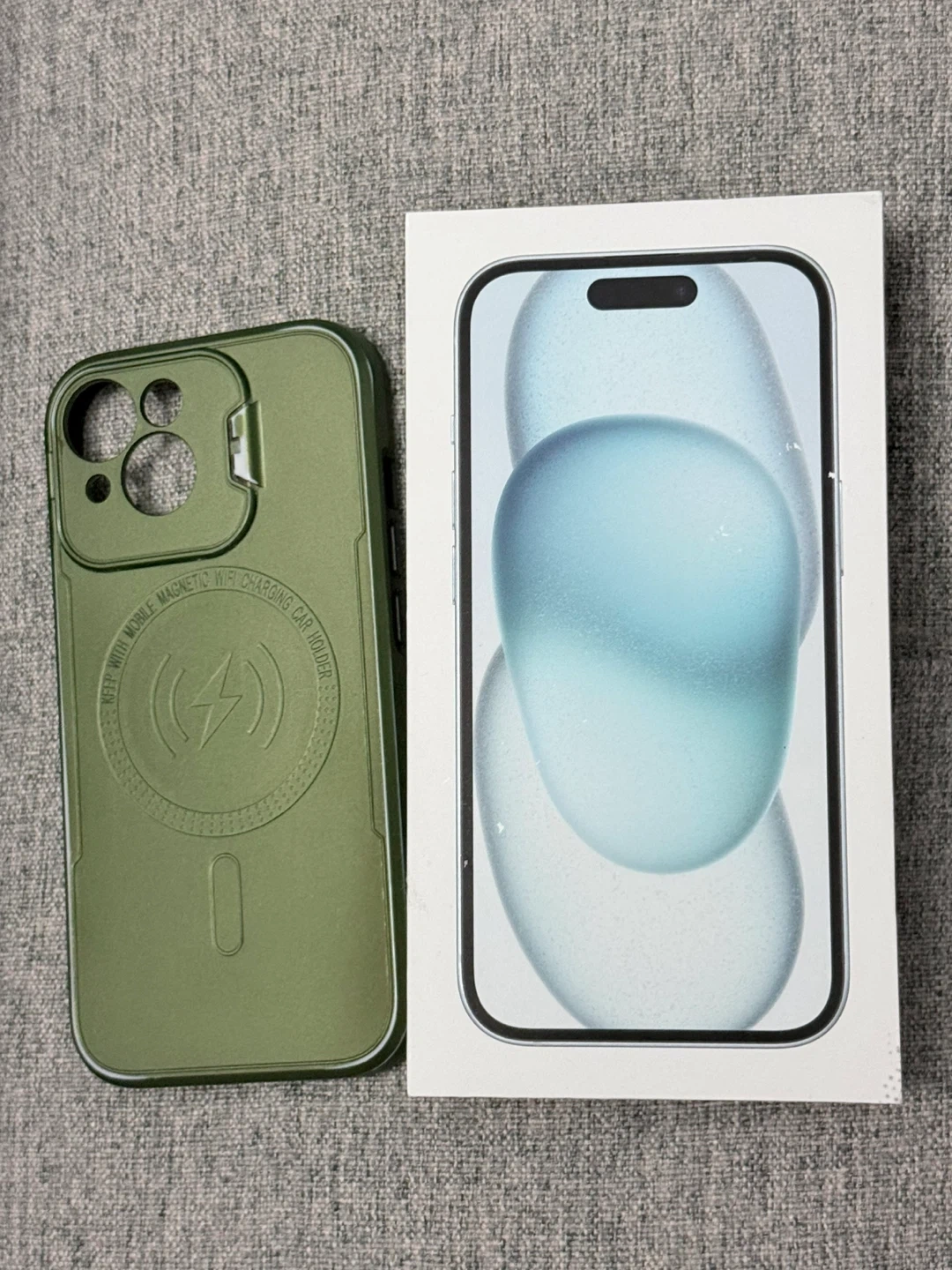 Unlocked Blue 128 GB iPhone 15 + USB cable + Box+ Case + Screen protector