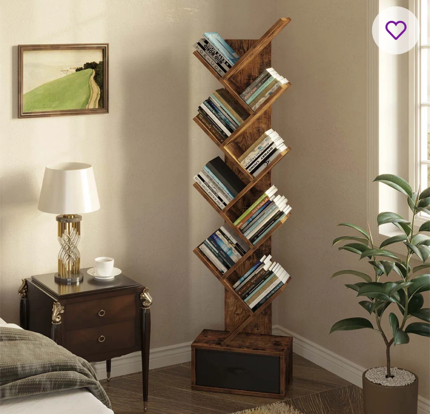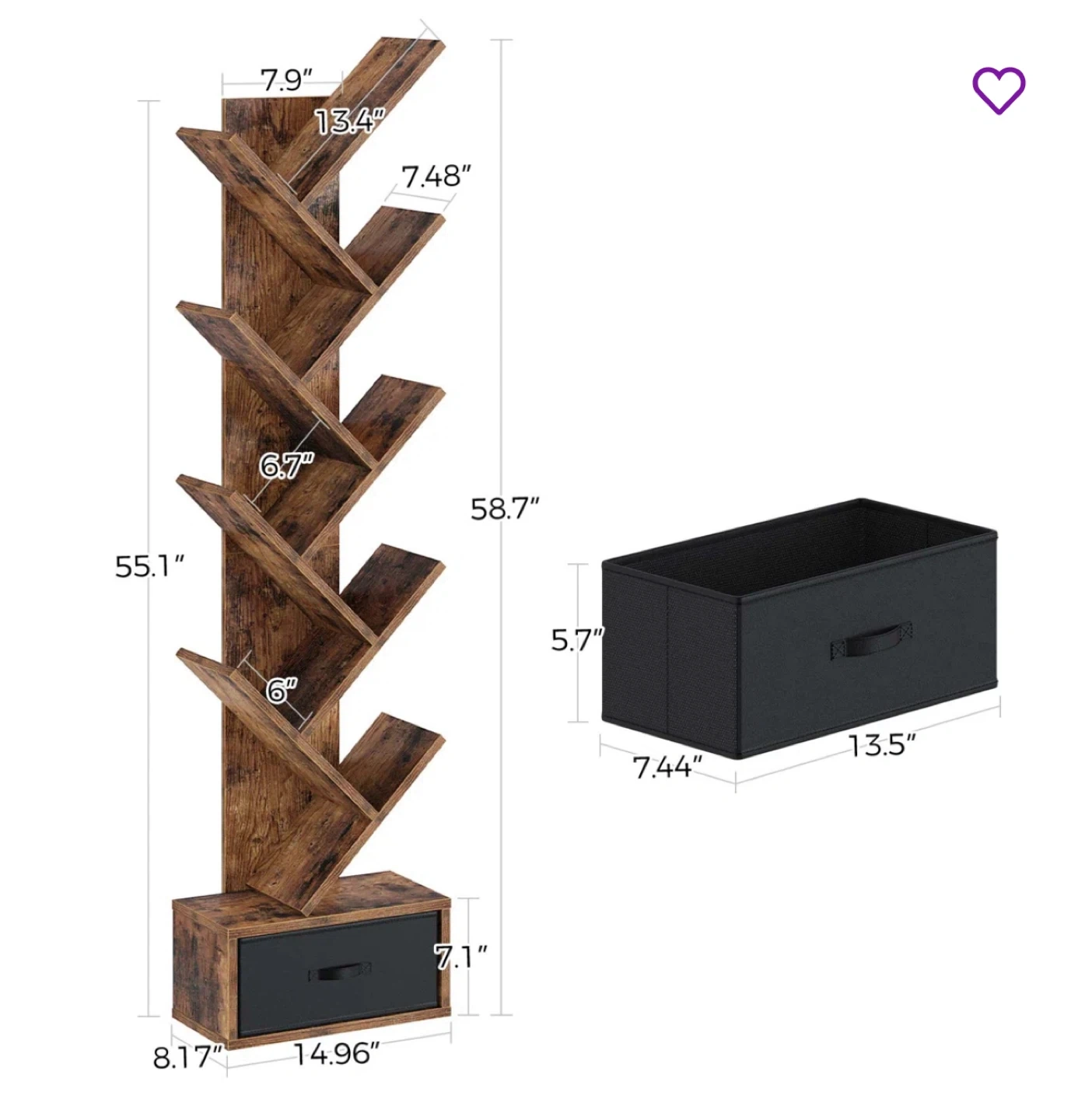 Looking to add a unique touch to your space? This tree bookshelf is perfect for displaying your favourite reads and adding a bit of flair! It features a storage drawer at the bottom for extra organization. The bookshelf is 58.7" tall, 14.96" wide, and 8.17" deep, offering plenty of shelf space without taking up too much room