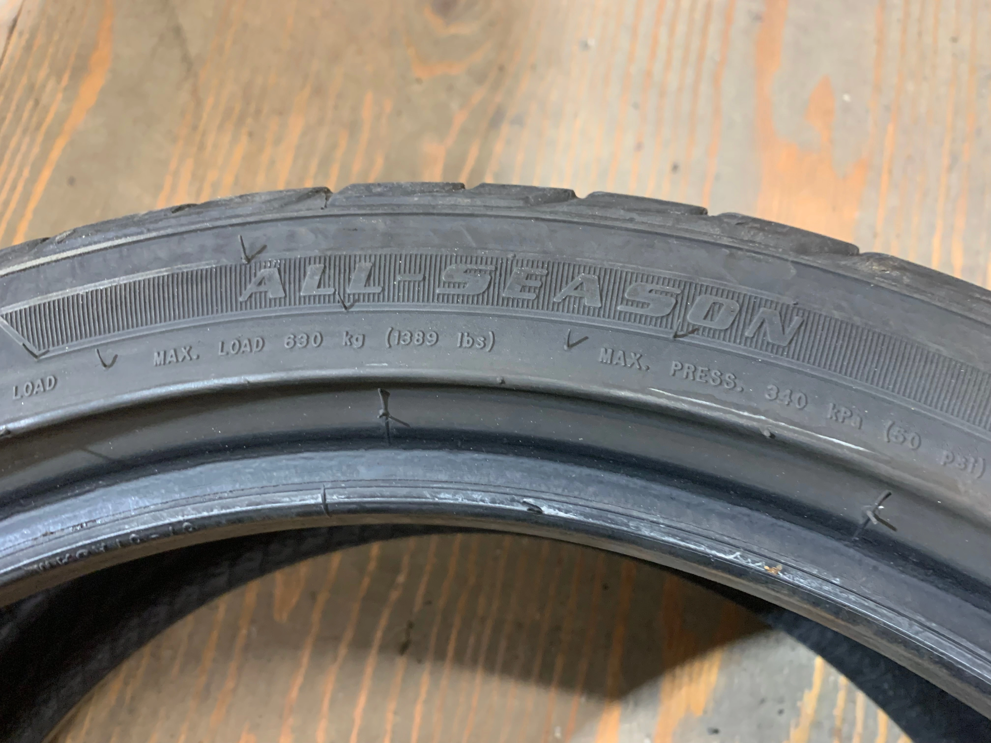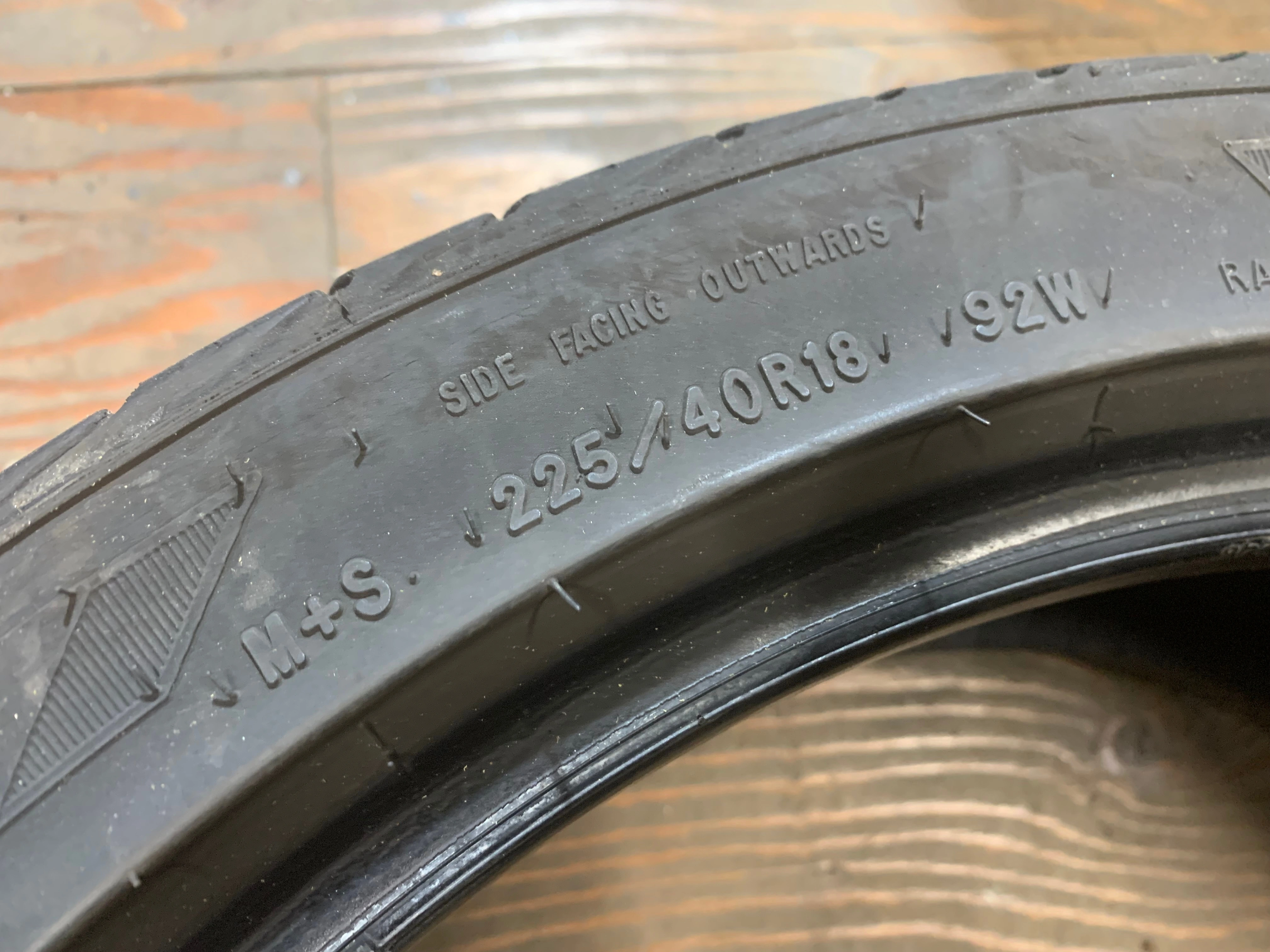 size 225/40/18 92W M+S Goodyear Eagle Sport A/S with no repairs and 1@50% 1@60% 2@70% tread