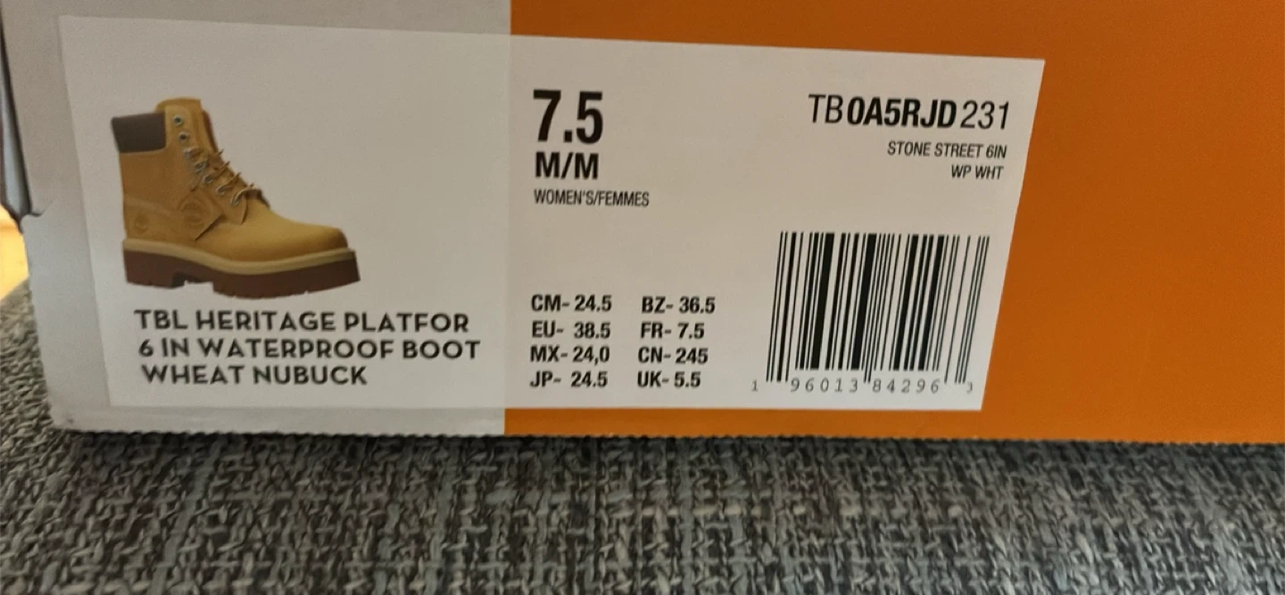 Selling a pair of brand new Timberland Heritage Platform 6-inch Waterproof Boots in size Men’s 7.5 Women’s 9. These boots are in excellent condition and come with the original box. The colour is Wheat Nubuck. They are waterproof and ready for any weather!