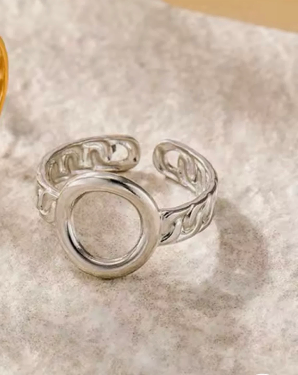 Selling a cute S925 silver ring with a circle and chain design! It's in great condition and perfect for adding a bit of flair to your outfit