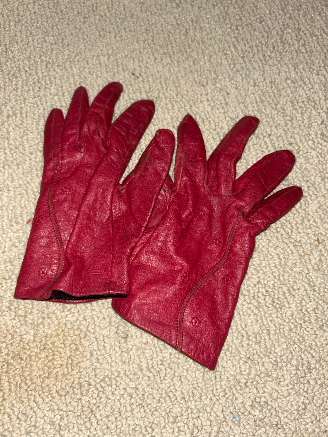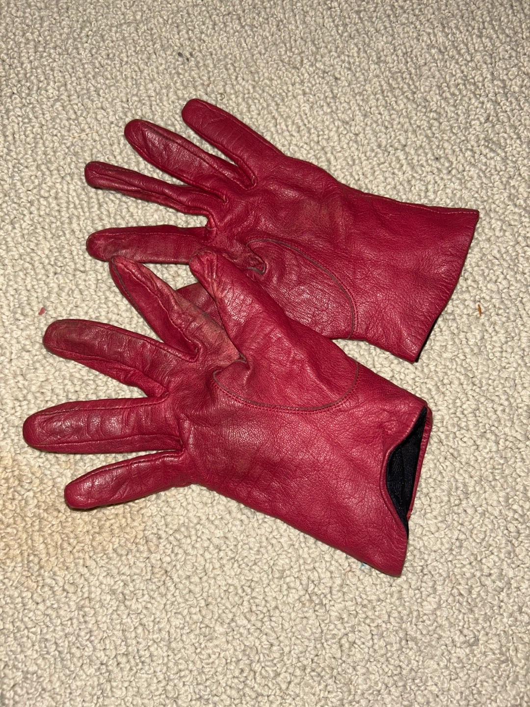 Selling a pair of red leather women’s gloves. They show some signs of wear but are still in good condition. Perfect for spring/autumn weather. Bought for $320. From 2006. ALL FUNDS GO TO CHILDREN’S BELIEVE CHARITY!!!!!