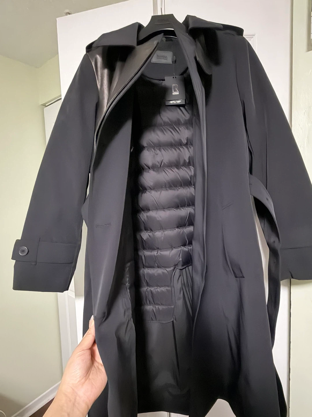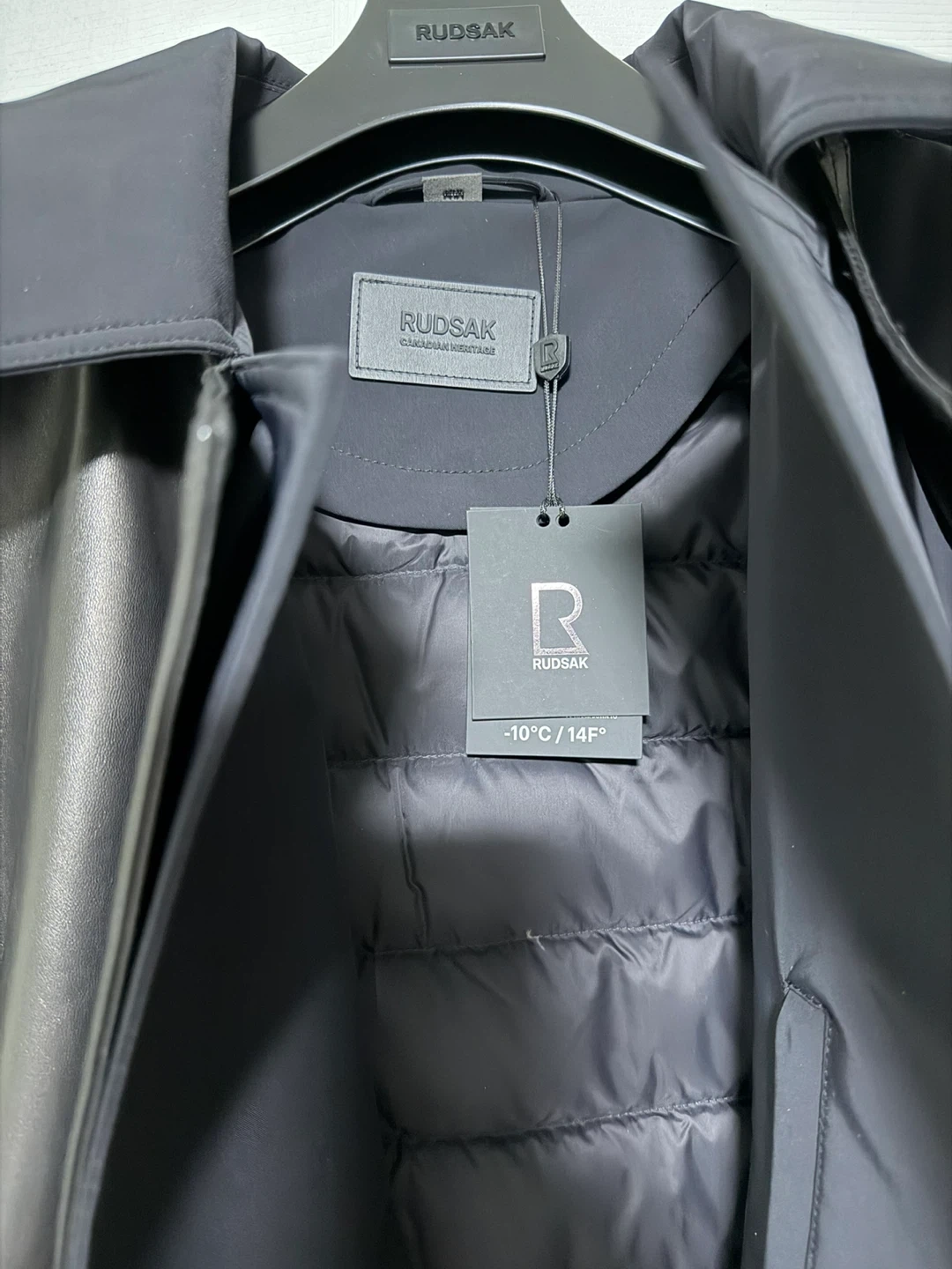 BRAND NEW - water repellent RUDSAK trench coat with real leather trims. It's designed for warmth with an inner puffer lining, suitable for temperatures down to -10°C (14°F). The inner lining is also removable.