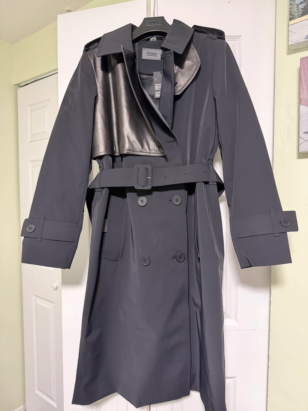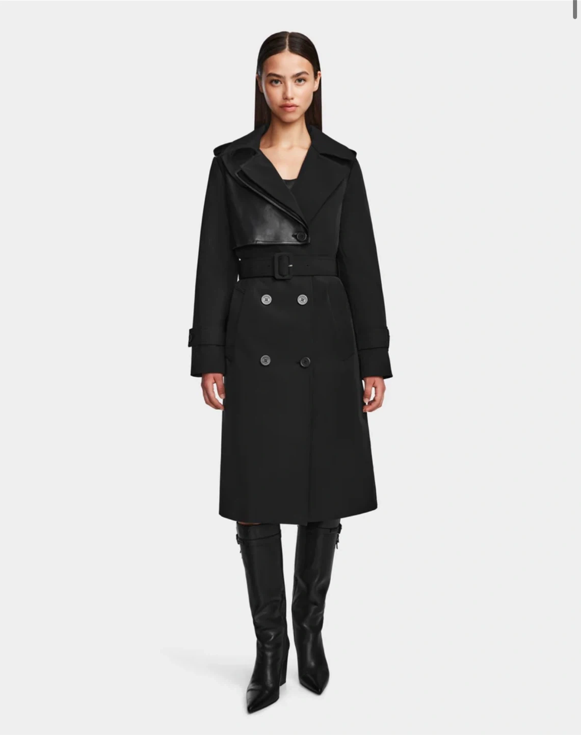 RUDSAK Black Trench Coat with Leather Accents