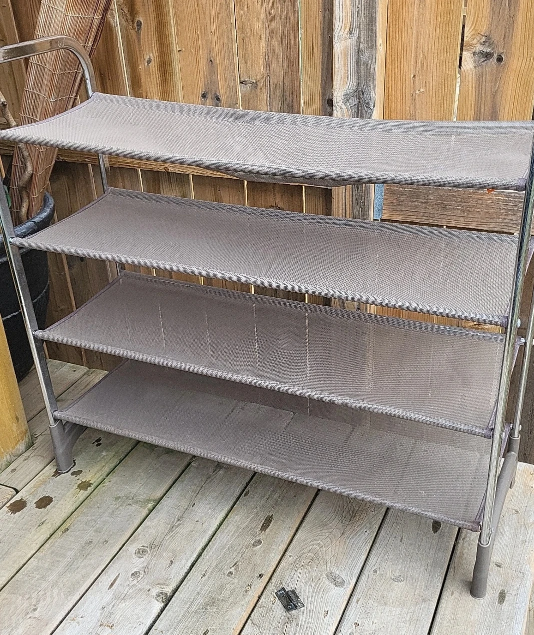 Selling a 4-tier shoe rack. It's perfect for keeping your entryway or closet organized. The rack is made of a durable material and has a simple, modern design.