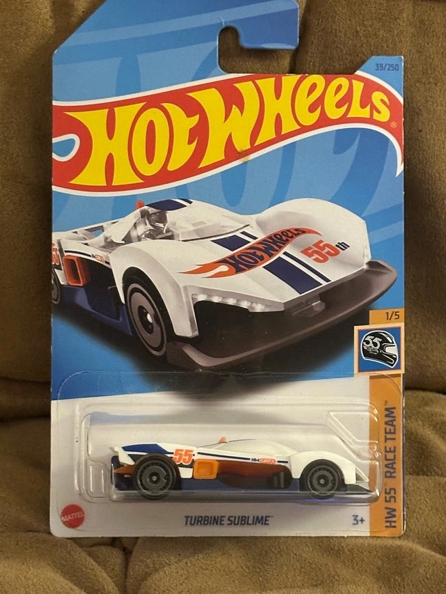 Hot Wheels Turbine Sublime die-cast car, a must-have for collectors and racing enthusiasts alike. This model is brand new, still sealed in its original packaging, ensuring it's in mint condition. Own a piece of miniature racing history. It's ready to rev up some fun, whether on display or racing down the track! If the listing is still up, yes, it's still available!