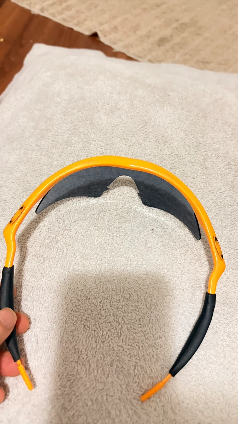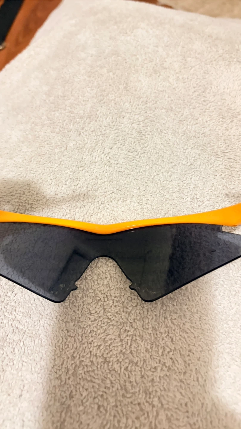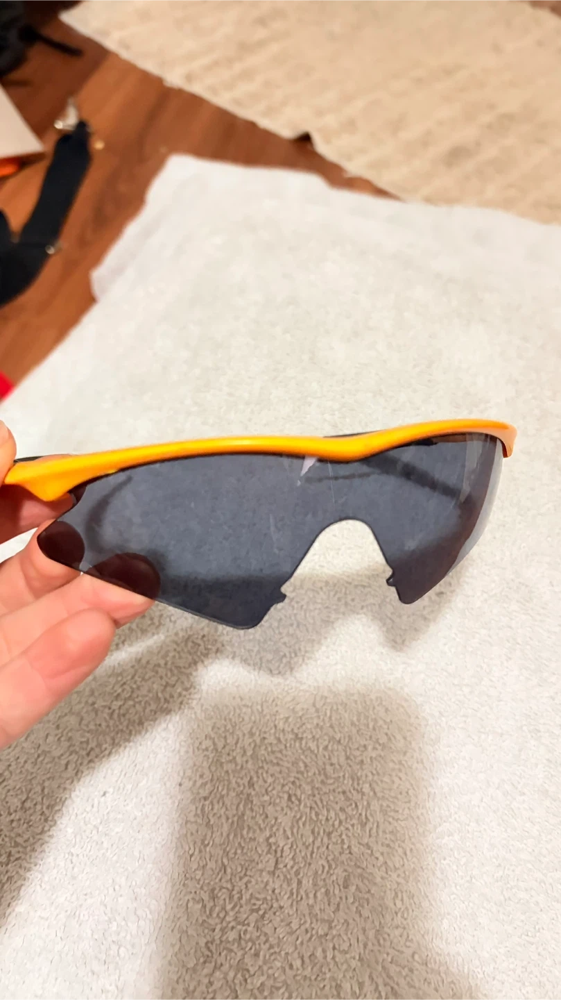 Selling a pair of Oakley sunglasses Mframes model with a vibrant orange frame. They show some signs of wear, but are still functional. Great for sports or everyday wear! No nose pads