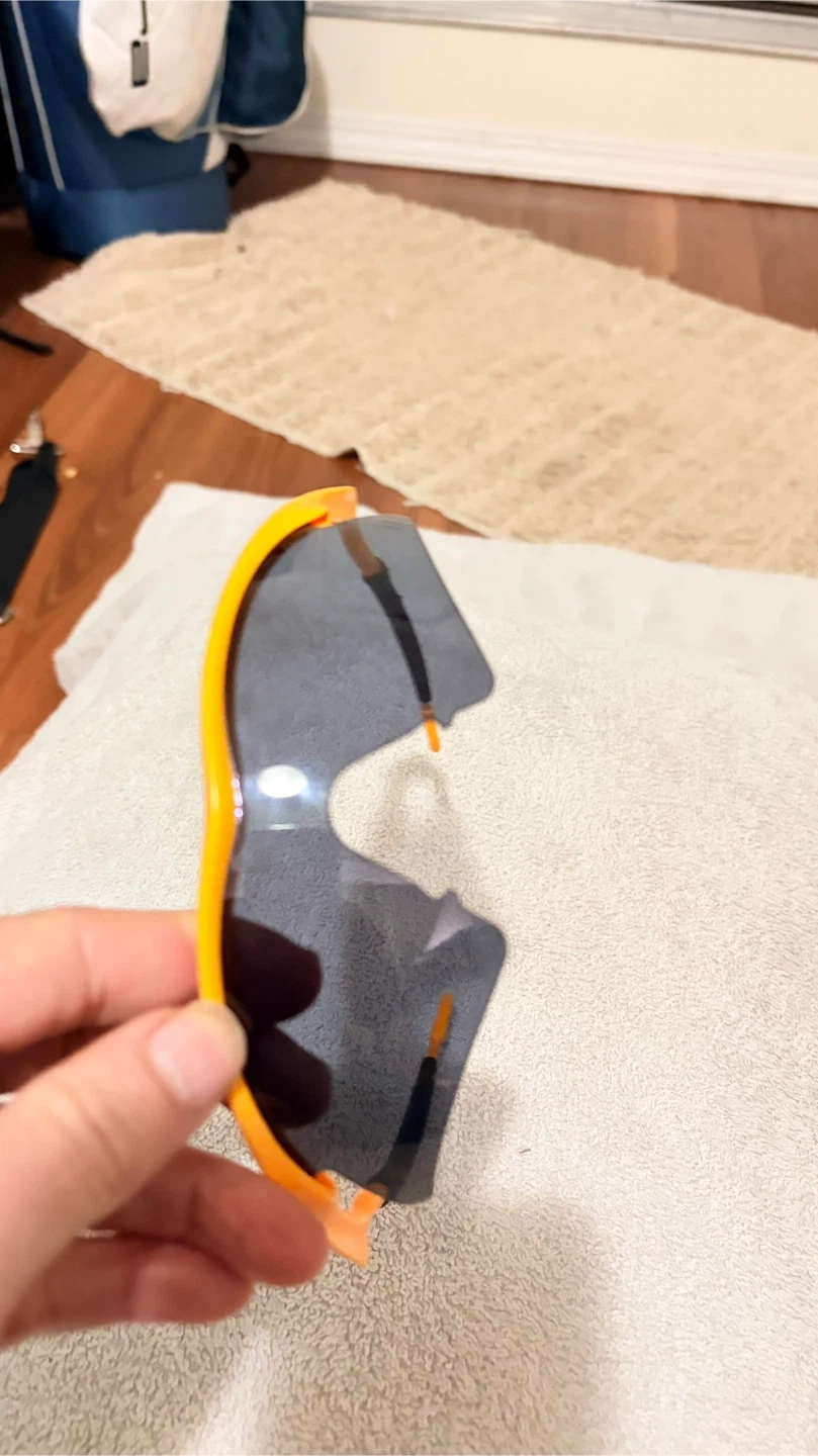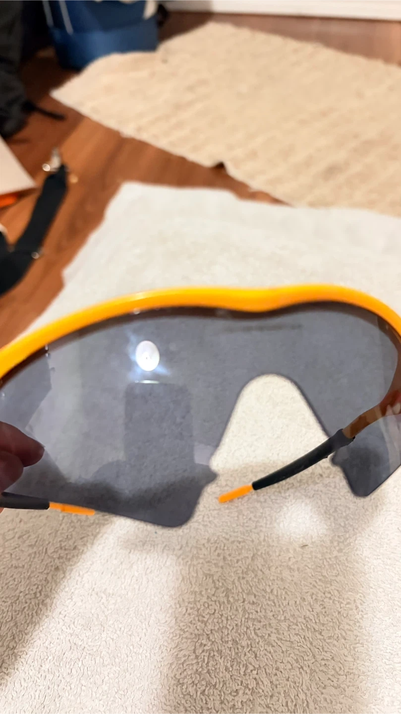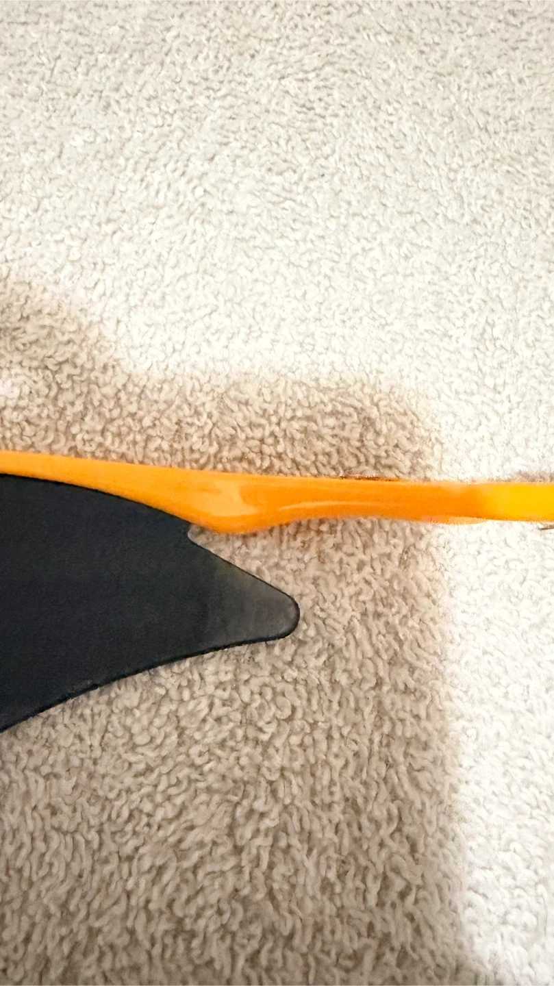 Selling a pair of Oakley sunglasses Mframes model with a vibrant orange frame. They show some signs of wear, but are still functional. Great for sports or everyday wear! No nose pads