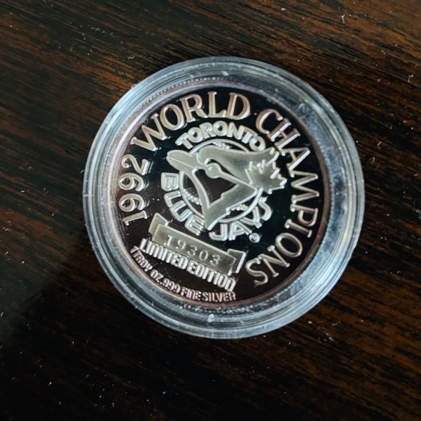 Own a piece of history. First time the Jays won the World Series! Be ready for when they win it again in 2026!!! Selling a 1992 Toronto Blue Jays World Champions limited edition coin. It's made of .999 fine silver and weighs 1 troy ounce. A great piece for any Blue Jays fan! Would trade for 1993 world series coin / or other cool silver coin.