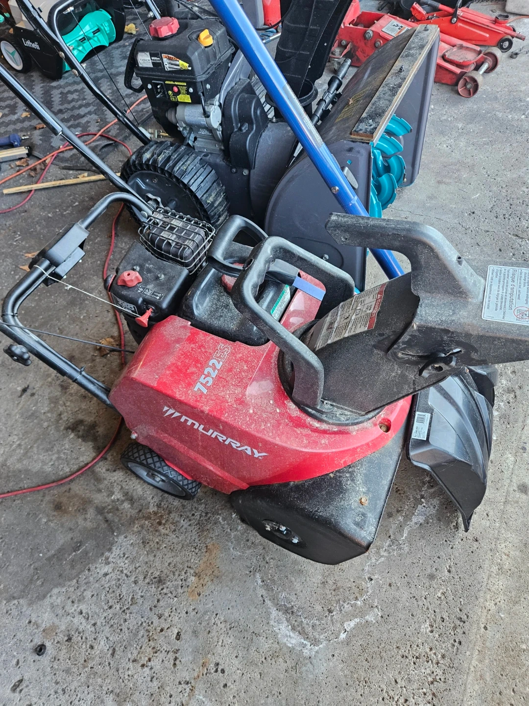 Selling a Murray 7522ES snow thrower. It's red and black. Perfect for clearing snow this winter season! It had electric start and uses oil and gas separate