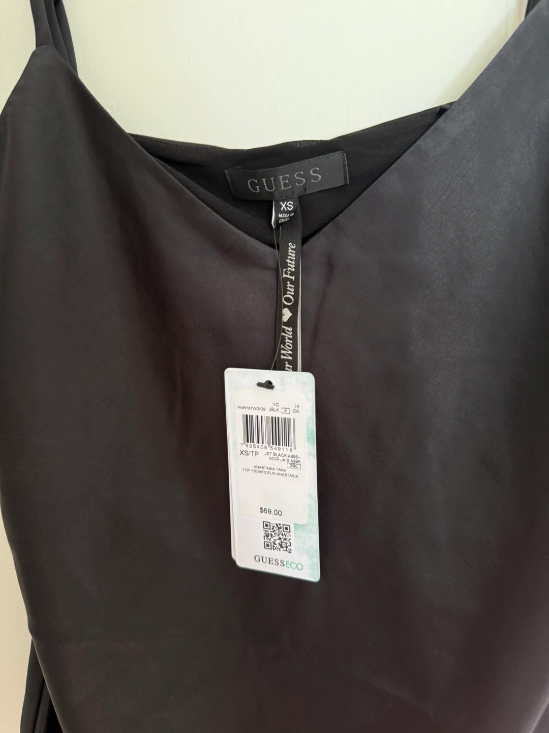 Brand new with tags Guess black cami top in size XS! This cute top is perfect for dressing up or down. The material is soft and flowy, and it's super comfortable to wear. Originally bought for $69.00- Asking price $20 OBO