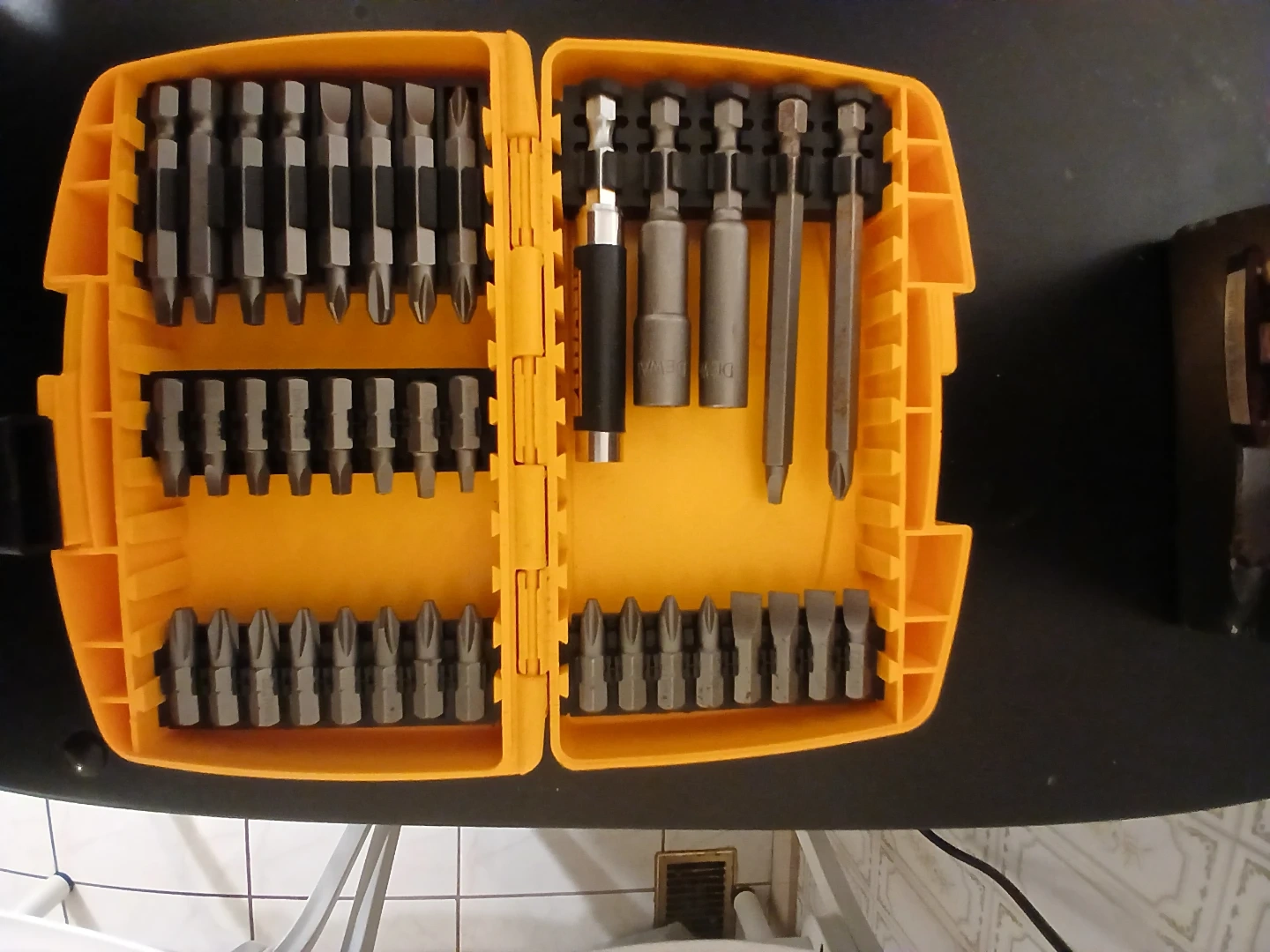 Selling a DeWalt drill bit set in a yellow case. It includes a variety of drill bits and drivers. The case is included