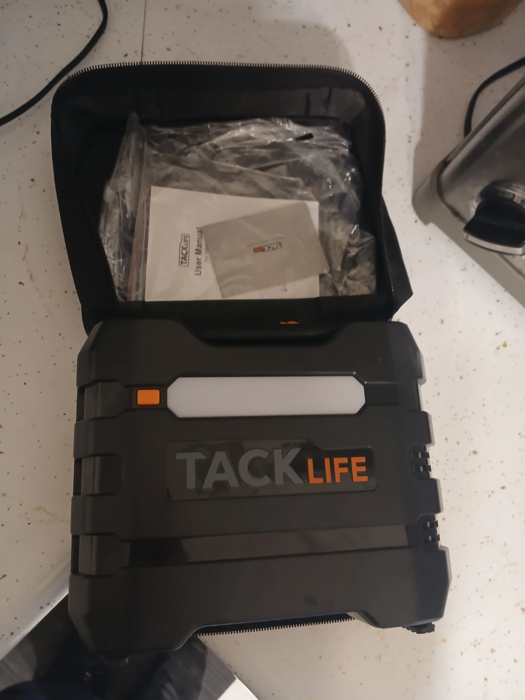 Selling a Tacklife jump starter. It comes with its original case and user manual, so it's easy to keep everything organized. It's in great condition and ready to help you out in a pinch!