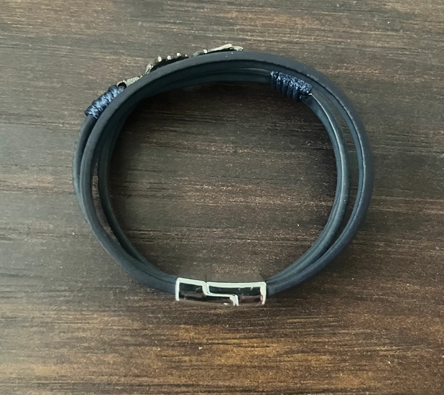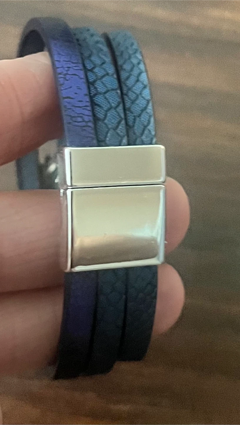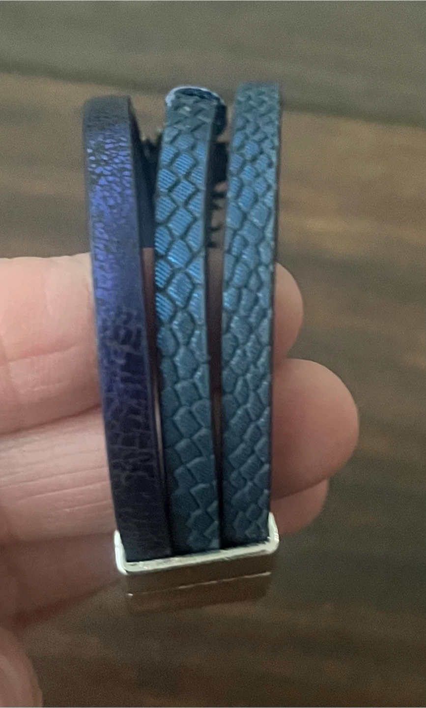 Blue Leather Feather Accent Bracelet