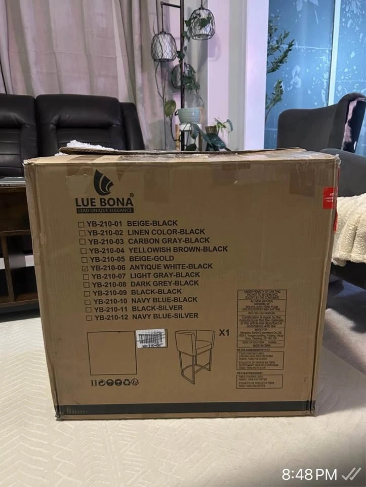 I am offering a new Lue Bona barstool with an antique white seat and black legs! This stylish barstool features a comfortable seat and a sturdy base, perfect for any kitchen or bar area.
