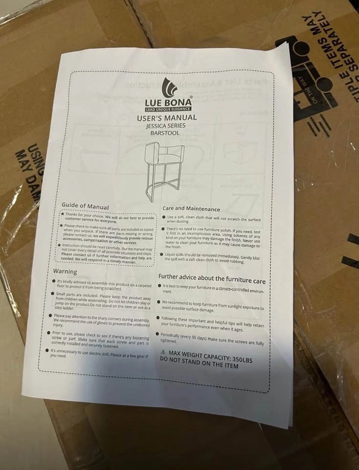 I am offering a new Lue Bona barstool with an antique white seat and black legs! This stylish barstool features a comfortable seat and a sturdy base, perfect for any kitchen or bar area.