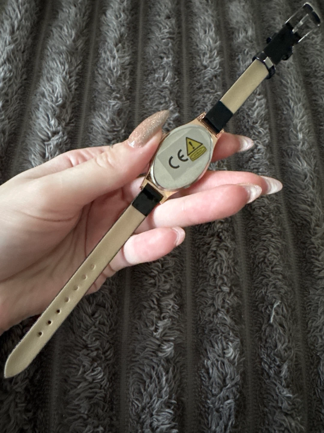 Selling a stylish ladies quartz watch with a sleek black band. It's in great condition and would make a lovely addition to any outfit! The watch features a classic design with a quartz movement for accurate timekeeping