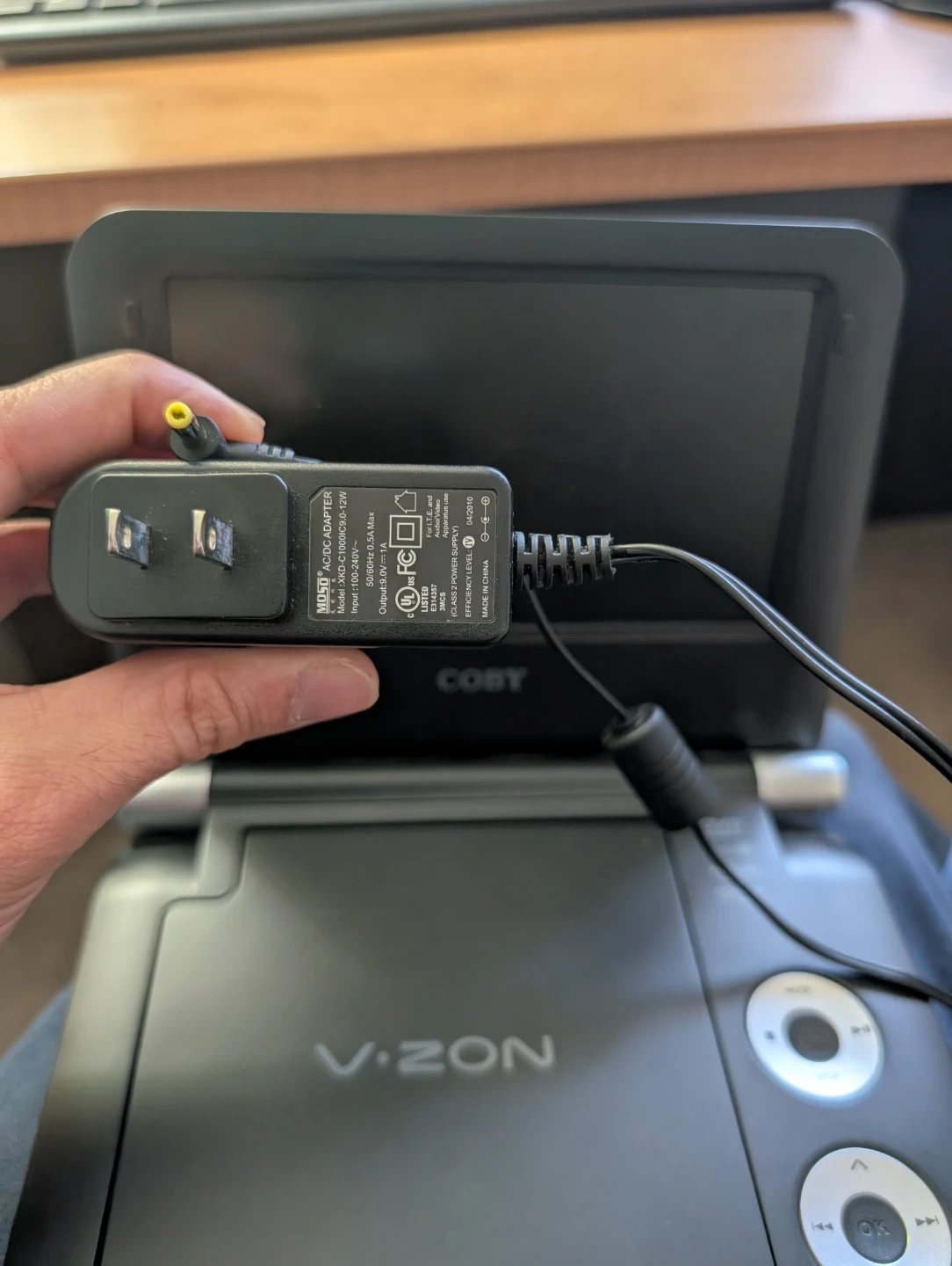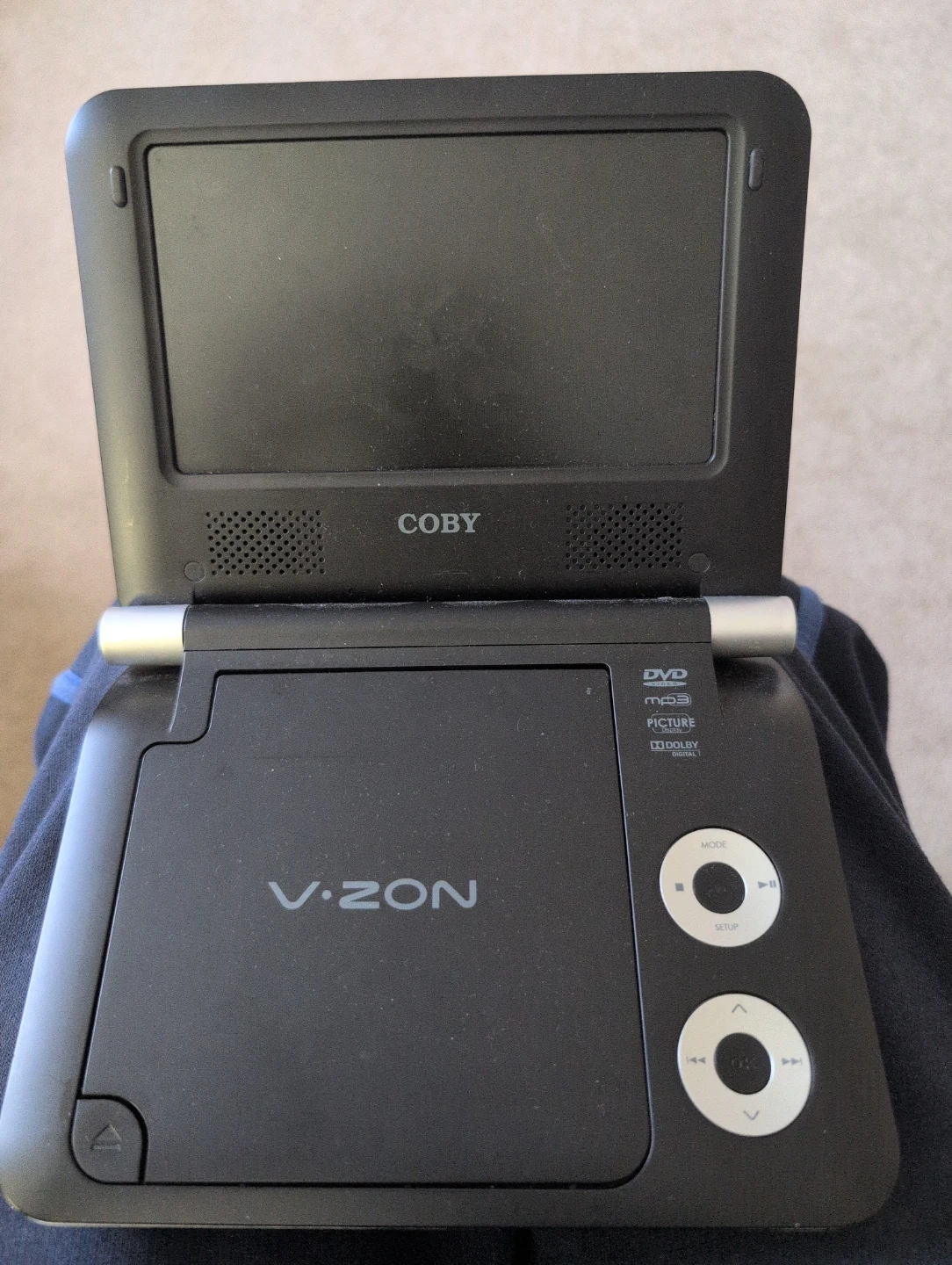 Selling a Coby V.ZON portable DVD player. It plays DVDs and also supports mp3 and picture formats. It's in good condition and ready for your next road trip or quiet time at home